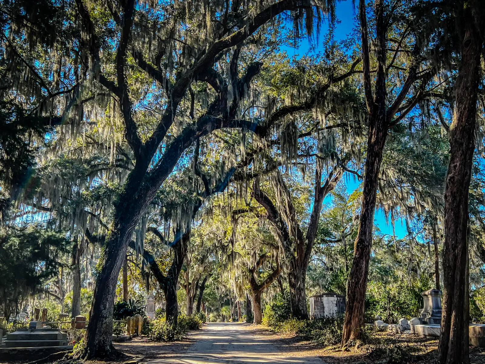 Wat Savannah zo’n onweerstaanbare stad maakt, is ook wat haar zo spookachtig maakt: zuidelijke eiken bedekt met Spaans mos die hoog boven de pleinen uittorenen en kronkelen, neoklassieke Antebellum-architectuur, gaslampen die flikkeren boven oneffen geplaveide paden en een vochtig subtropisch klimaat dat zwaar in de lucht hangt. Savannah wordt beschouwd als een van de spookachtigste steden van Amerika vanwege zijn bloedige geschiedenis, reeks branden en ziektes, plus straten en gebouwen die boven begraafplaatsen zijn gebouwd.