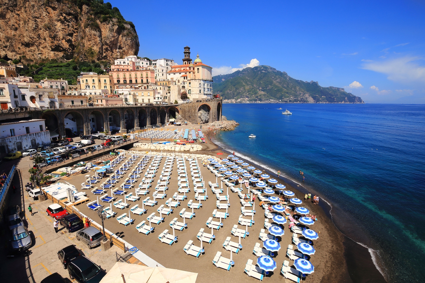 Vanaf een steile helling, waar film- en ‘gram’-waardige kauwgomkleurige huizen boven elkaar staan, heb je een adembenemend uitzicht op zee. De smalle straatjes (en trappen) brengen je naar een kiezelstrand dat erg in trek is bij de locals. We kunnen je vertellen, het is de trapafdaling waard. Eenmaal beneden aangekomen wacht een azuurblauwe zee waar je heerlijk kan zwemmen. Het Italiaanse strandleven op z’n best.