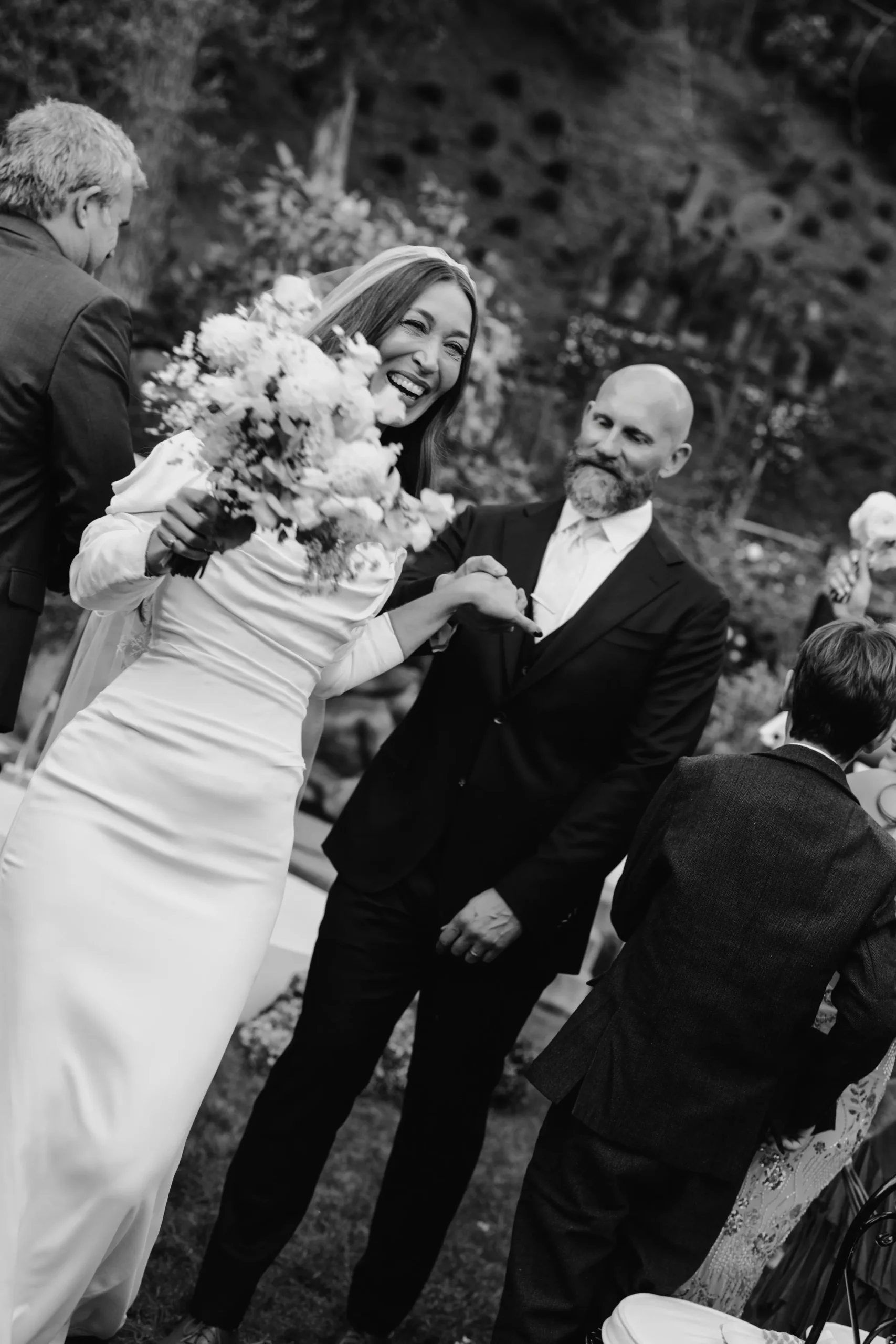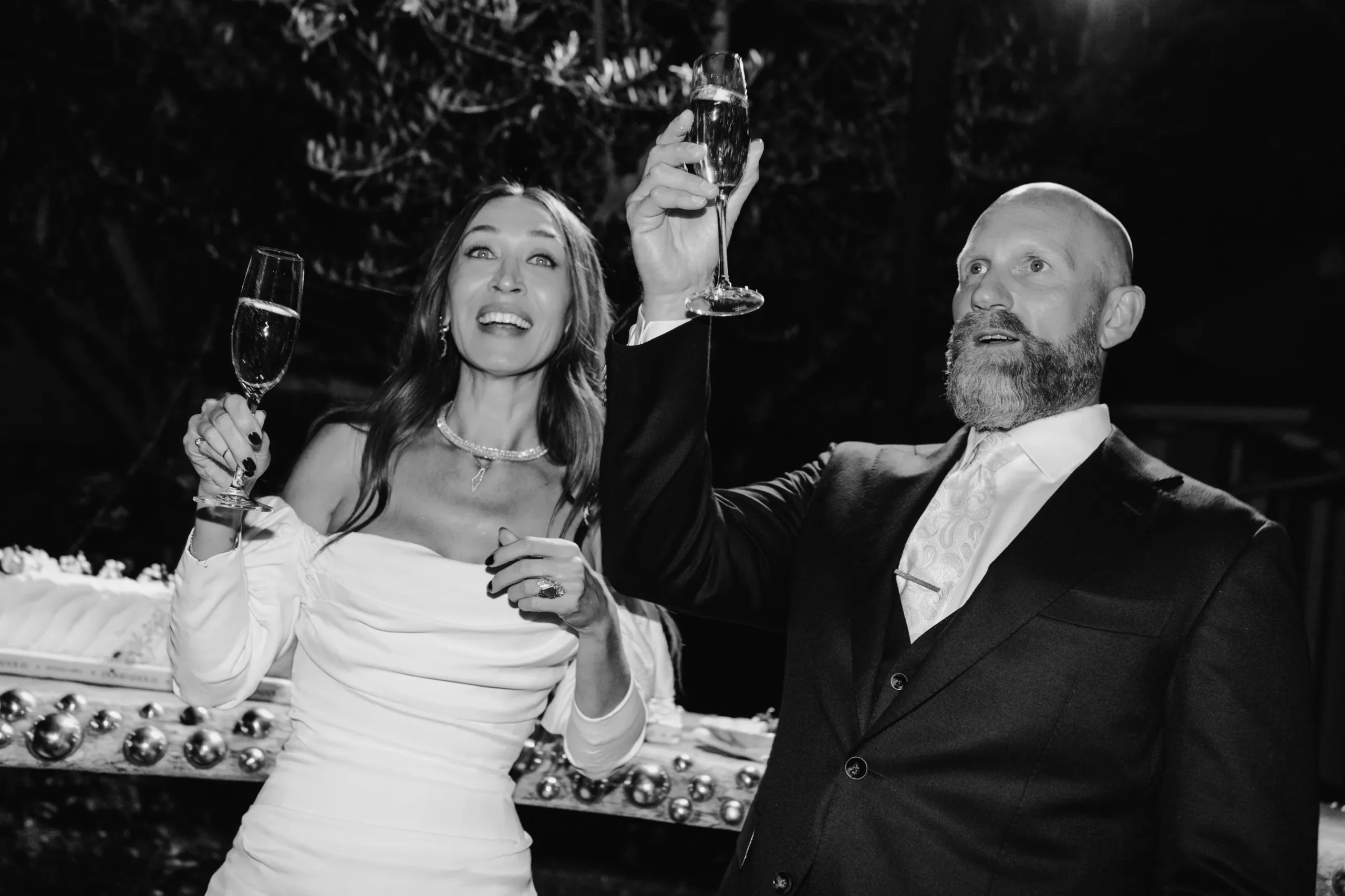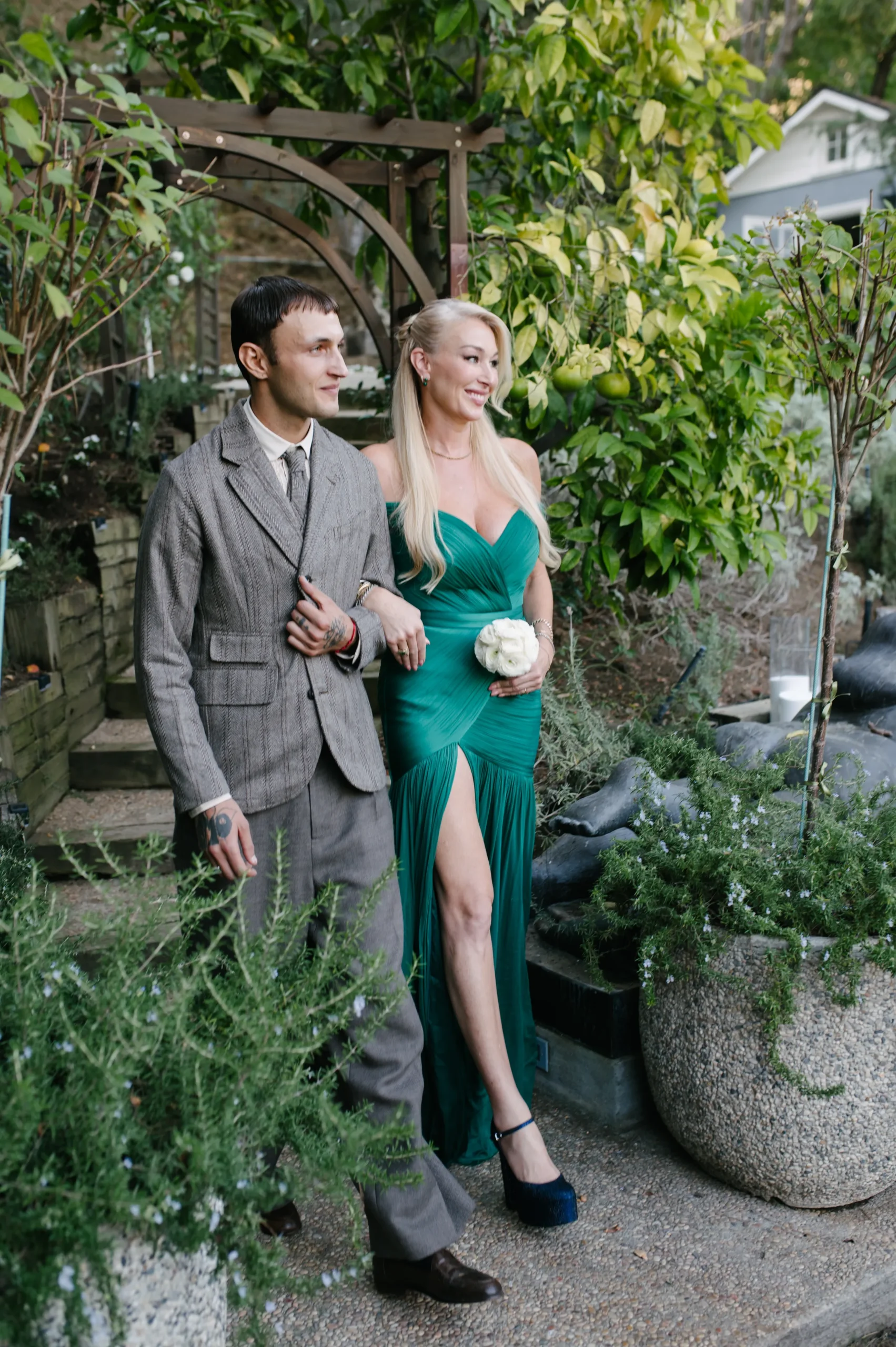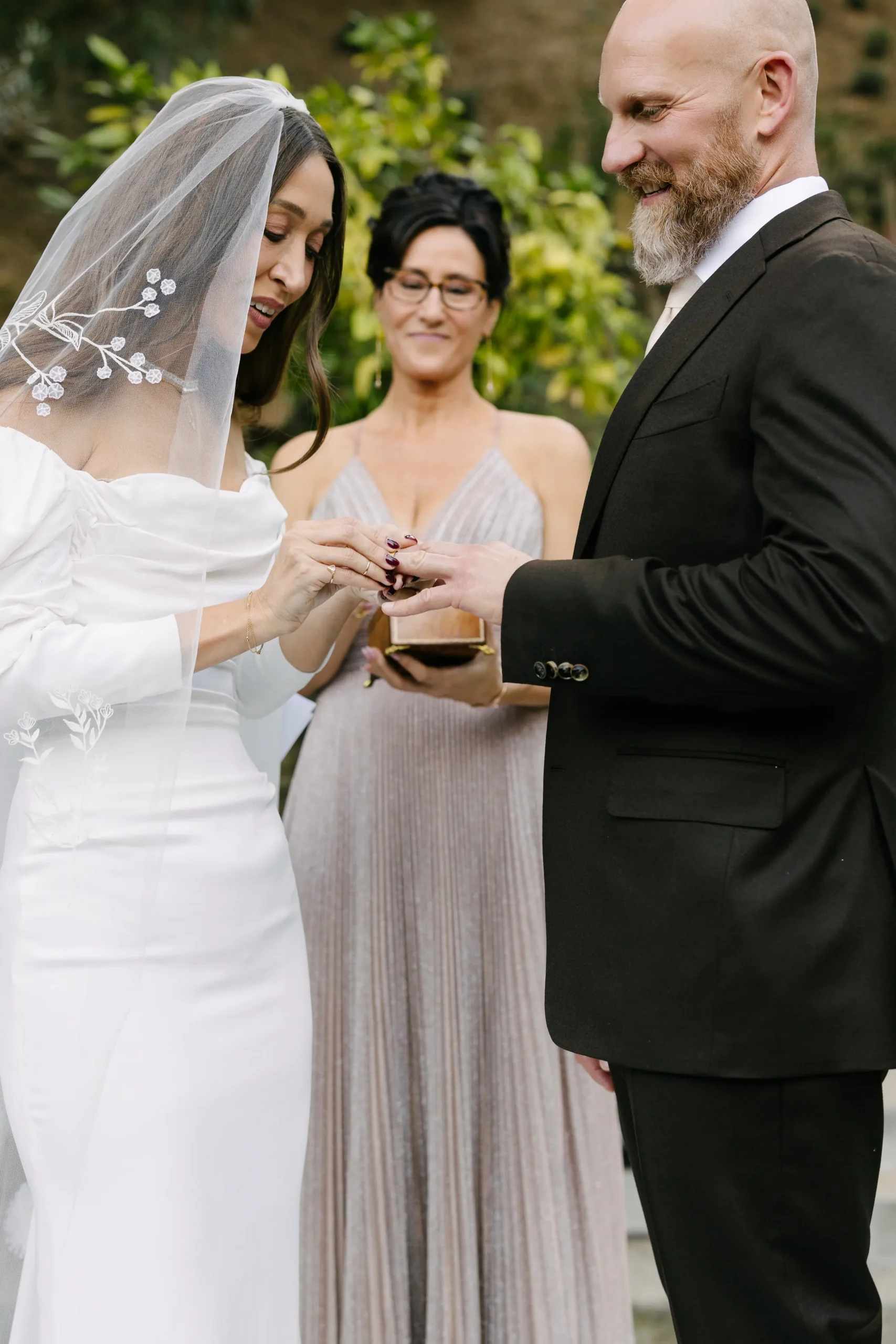 Het duurde nog drie jaar voordat het officieel werd. Ross, een Emmy-winnende televisieproducent die nu in de geestelijke gezondheidszorg werkt, plande een romantisch aanzoek in 2024, ter gelegenheid van Alana’s 41e verjaardag. “We maakten een roadtrip naar een klein hotel in de buurt van Big Sur en onderweg opende ik briefjes waarop stond wat hij zo leuk aan me vond”, herinnert Alana zich. “Hij was van plan om tijdens het diner een aanzoek te doen, maar we gingen wandelen met onze hond op een prachtig zwart zandstrand. We waren helemaal alleen en daar vroeg hij me ten huwelijk. Het was perfect en helemaal iets voor ons.”