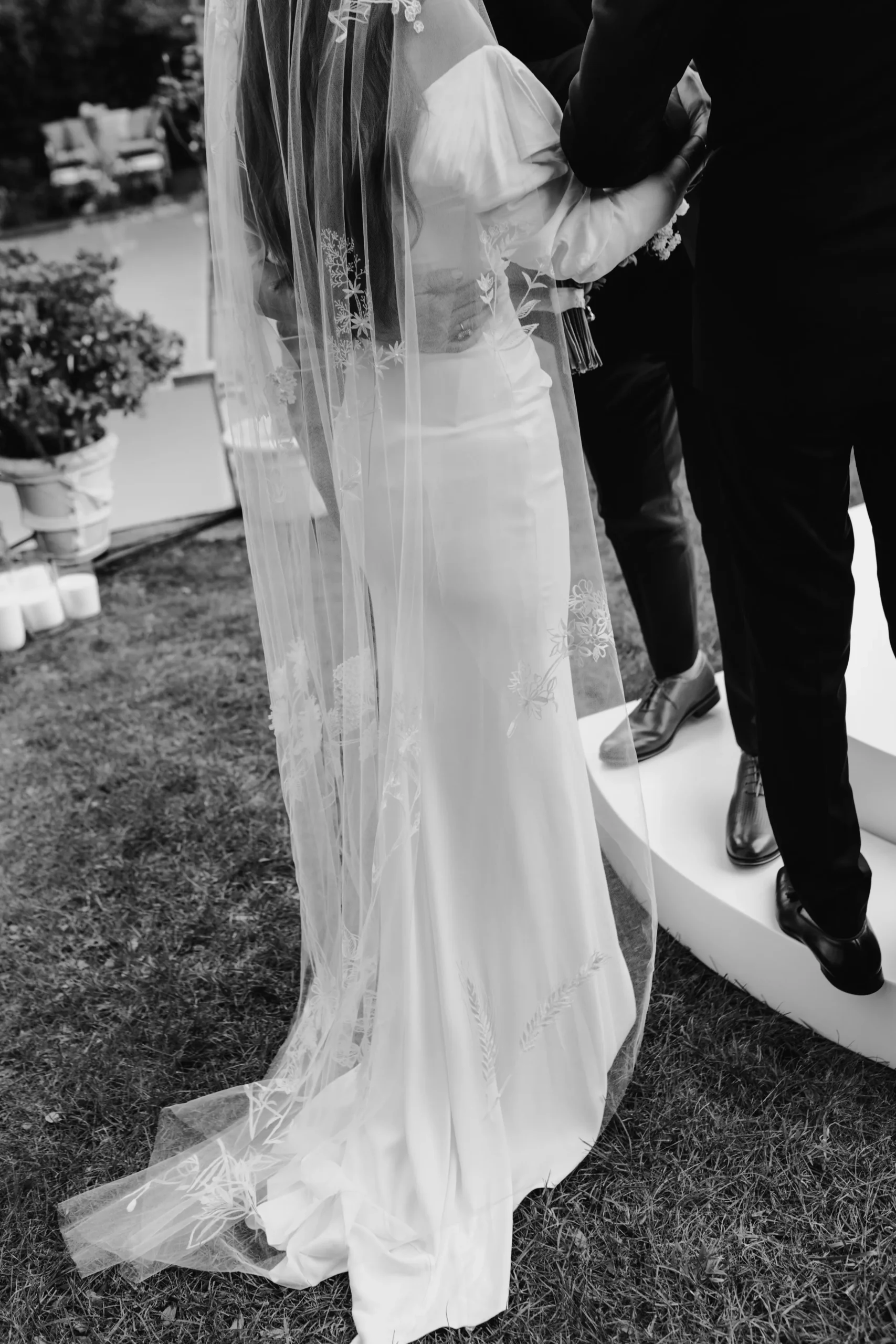 Het is niet verwonderlijk dat het paar even bewust te werk ging bij het plannen van hun bruiloft. Ze kozen het huis van Alana’s vader Mohamed Hadid in LA als locatie en 18 oktober – de trouwdag van Ross’ ouders – als datum. “We wilden het ergens doen dat voor ons een speciale betekenis had, dus het huis van mijn vader was een logische keuze”, legt Alana uit. “Toen waren we aan het bedenken in welke tijd van het jaar we wilden trouwen, en ik vind de herfst in LA gewoon een prachtige tijd.”