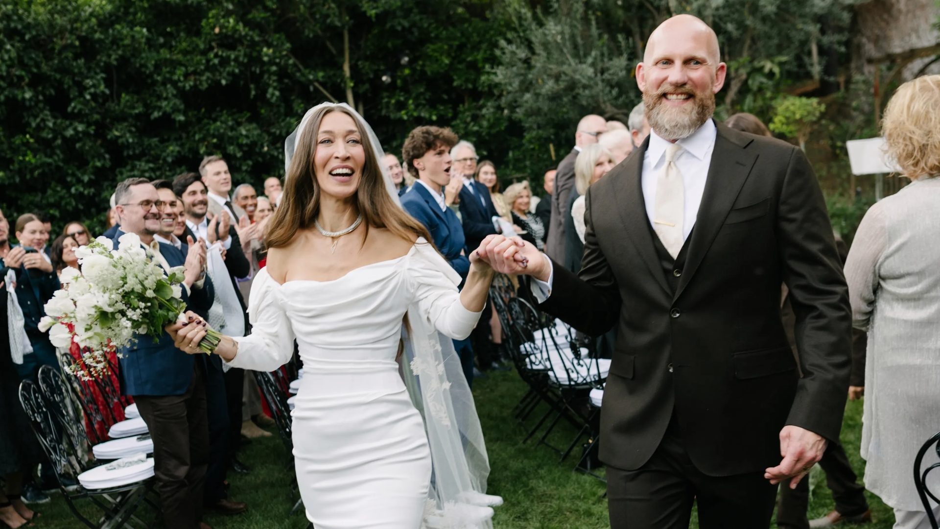 Alana Hadid is getrouwd met haar grote liefde Ross Williams tijdens een intieme bruiloft in de achtertuin van haar vader in Los Angeles, met niemand minder dan zussen Gigi en Bella Hadid als blootsvoetse bruidsmeisjes.