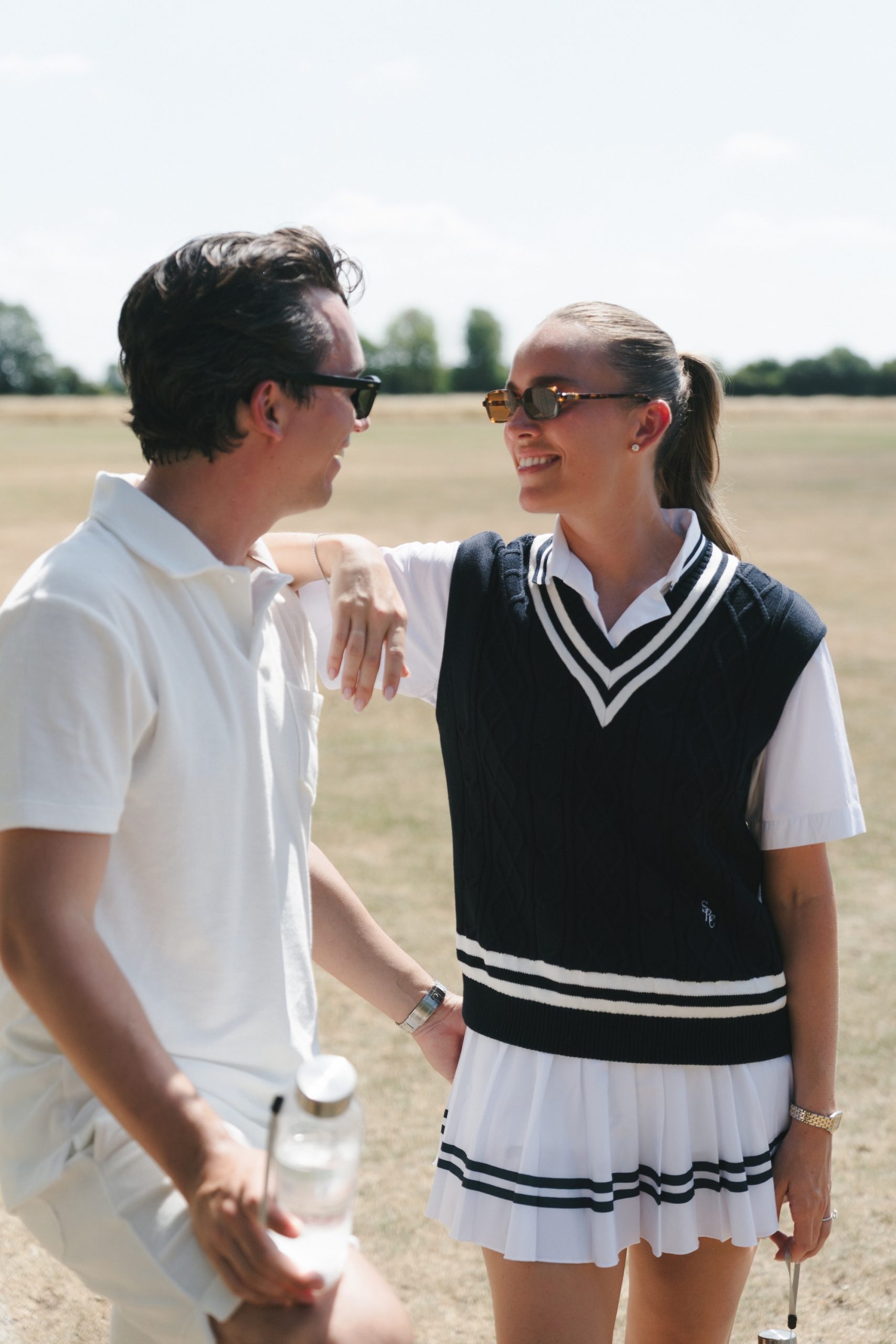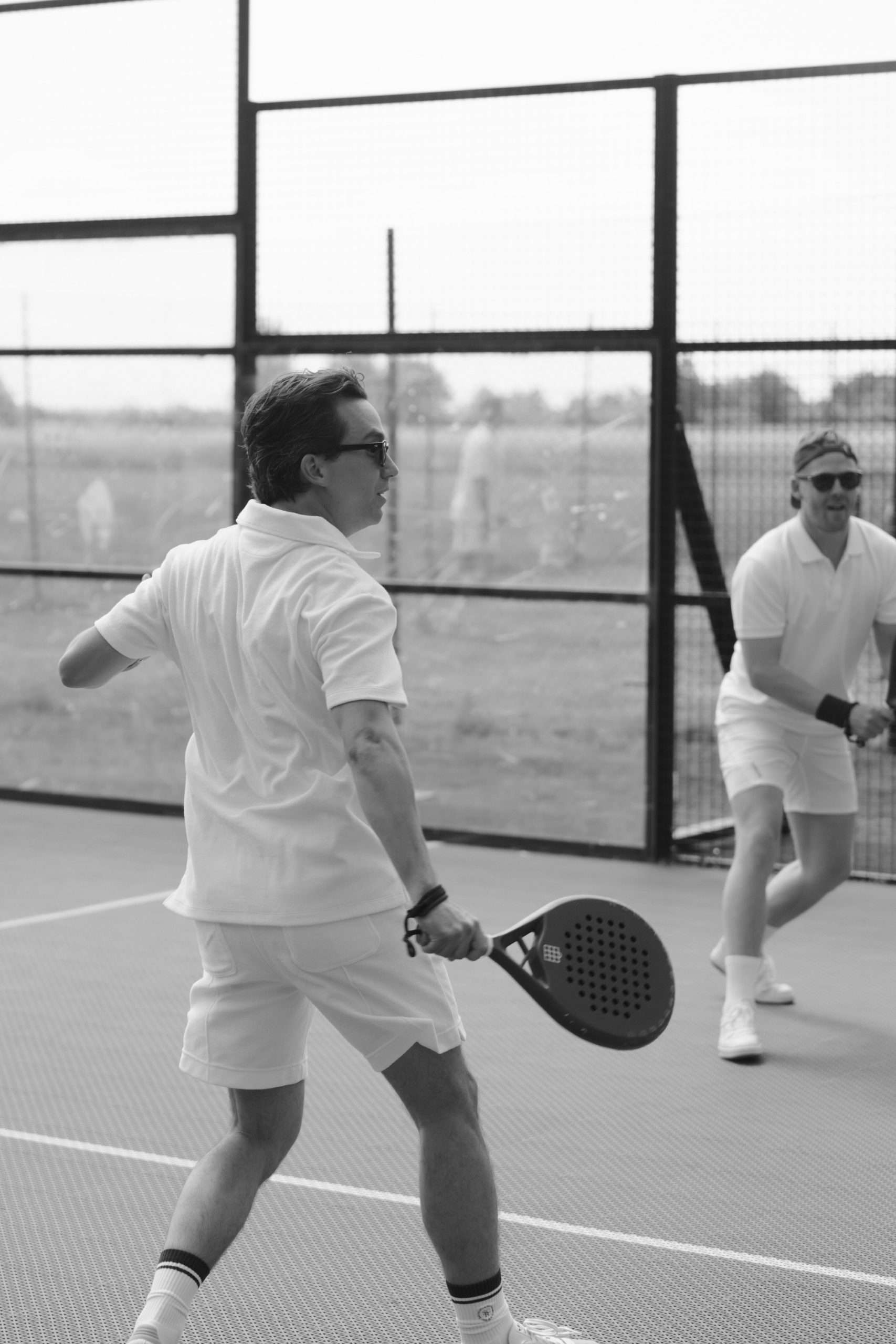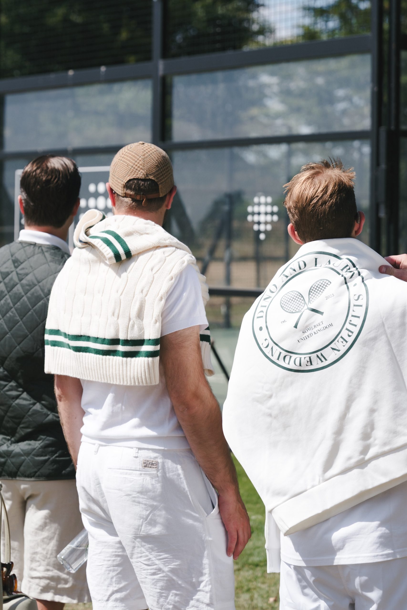 De volgende dag begon actief: na het ontbijt verzamelde iedereen zich op de tennisvelden om een balletje te slaan. In stijl natuurlijk, helemaal volgens het thema Country Club Casual. Iedereen droeg speciaal ontworpen truien van Amaya Amsterdam nonchalant over de schouders gedrapeerd, met daaronder geplooide tennisrokjes en witte polokragen. Lauren en Dino zagen er zelf ook Wimbledon-ready uit. Zo droeg de bruid een wit plooirokje, een korte witte blouse en een donkerblauw-wit gestreepte spencer, terwijl de bruidegom in een witte polo en bijpassende witte shorts verscheen.