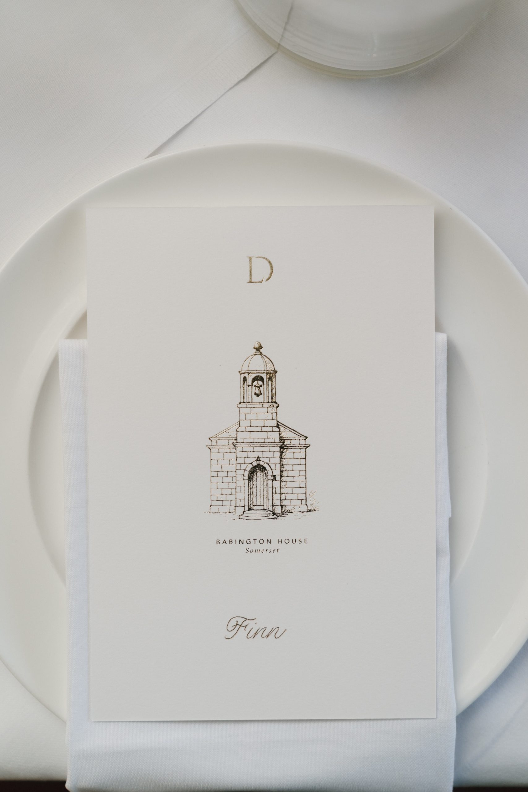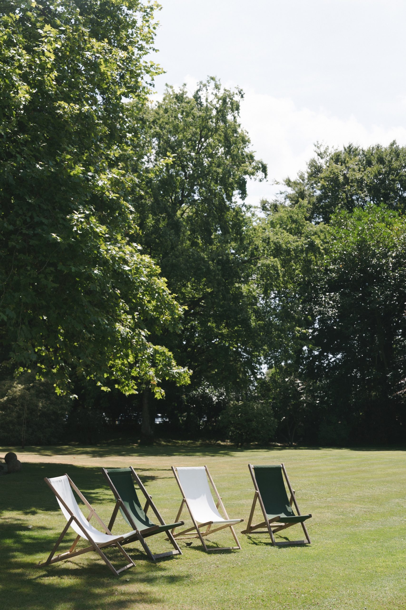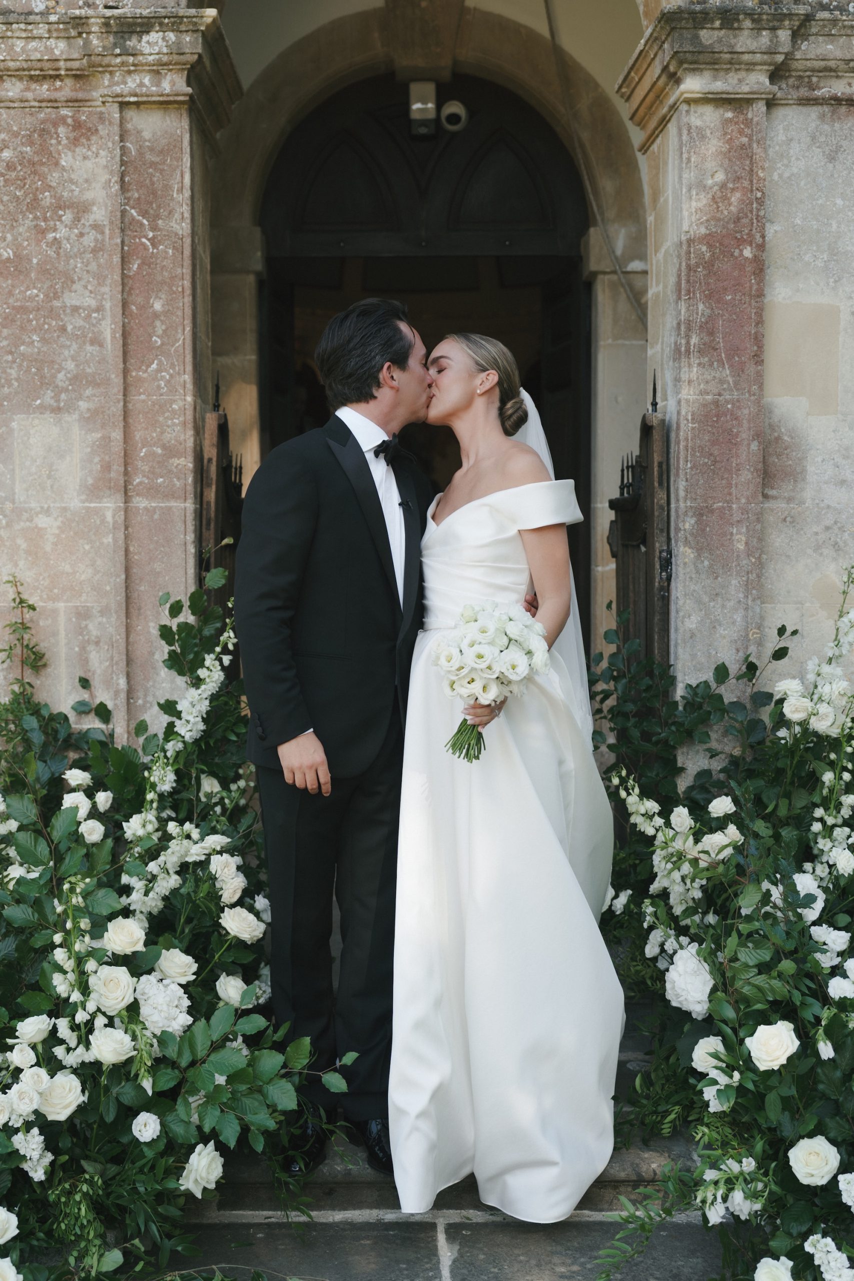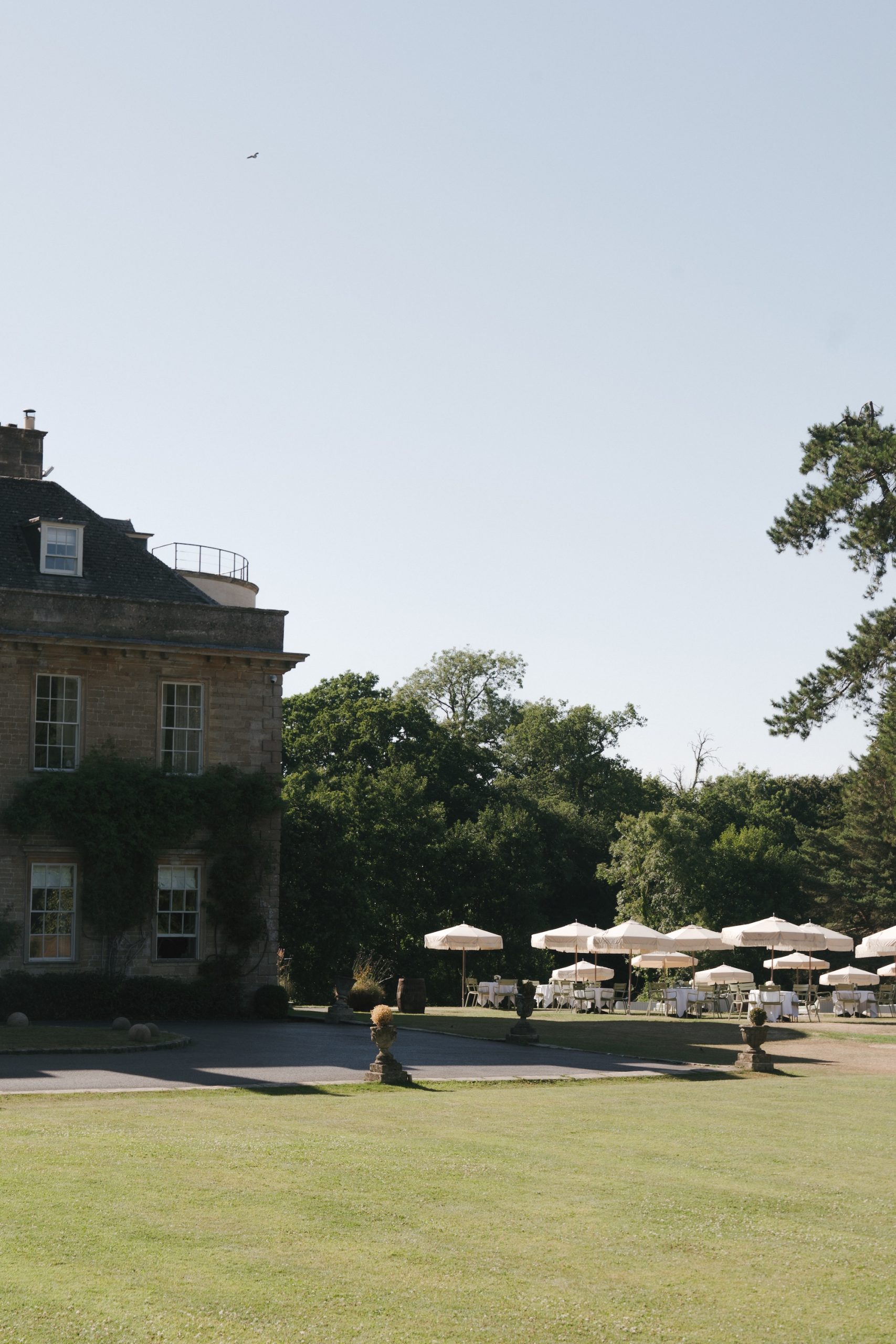 Als trouwlocatie koos het stel voor Somerset op het Engelse platteland, Soho Babington House om precies te zijn. “Het is een plek waar je volledig tot rust komt. Het landgoed ligt tussen uitgestrekte weiden en maïsvelden. Iedere kamer heeft een open haard, er staan regenlaarzen klaar om ’s ochtends je dag te beginnen met een wandeling, en in een barn-achtige setting vind je een zwembad met groen-wit gestreepte ligbedden en uitzicht op het omliggende meer. Het landgoed is een sprookje – niet alleen de droomsetting voor ons huwelijk, maar ook een romantische getaway voor onze gasten.”
