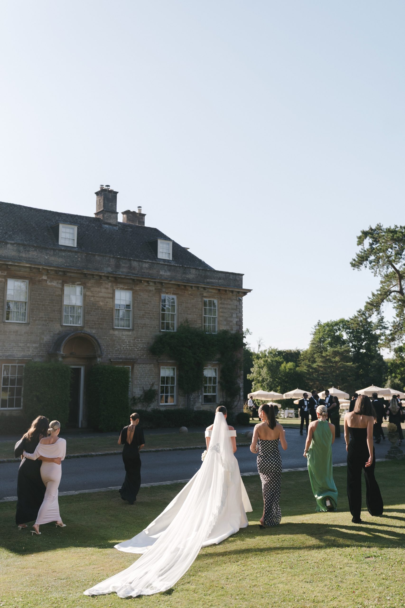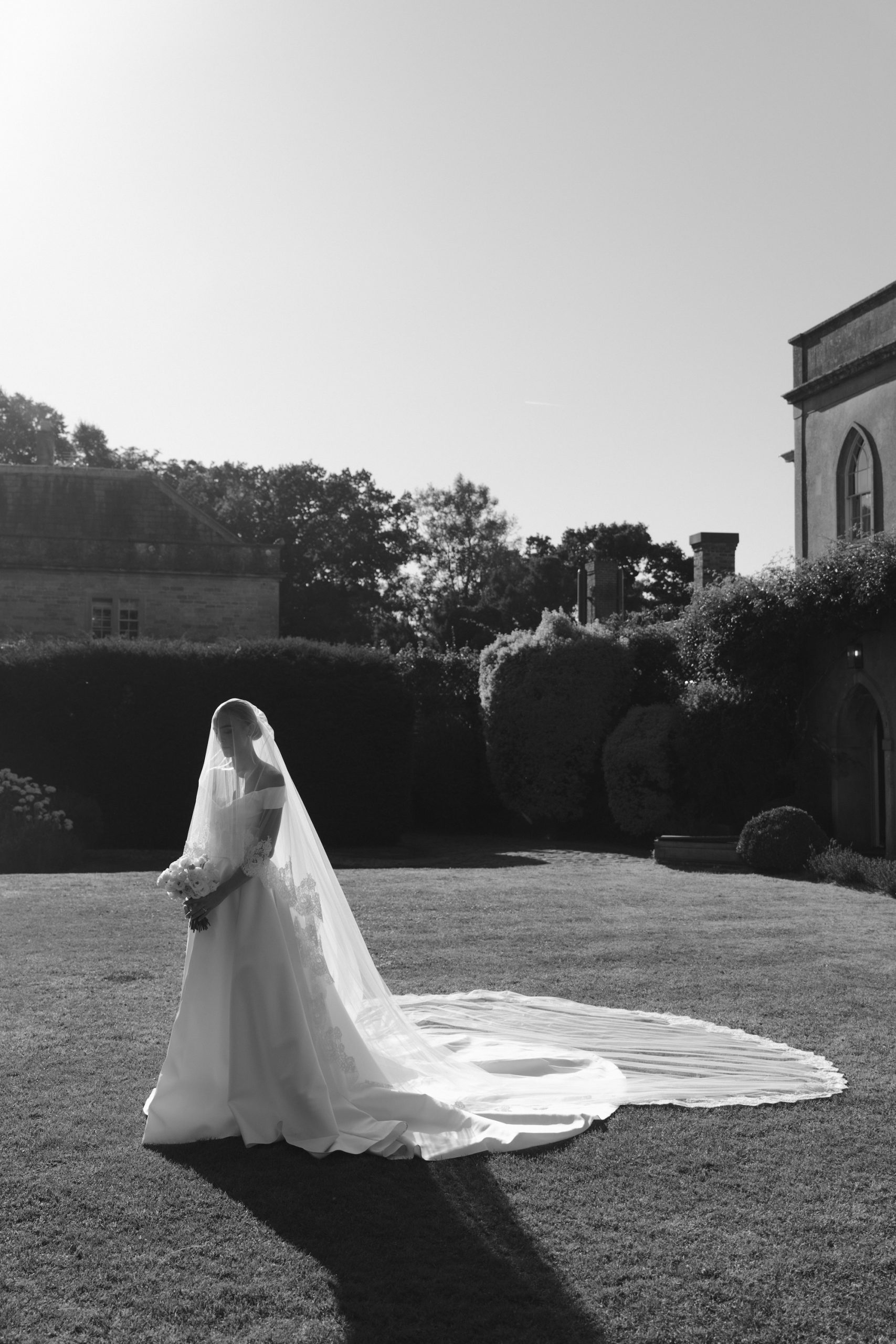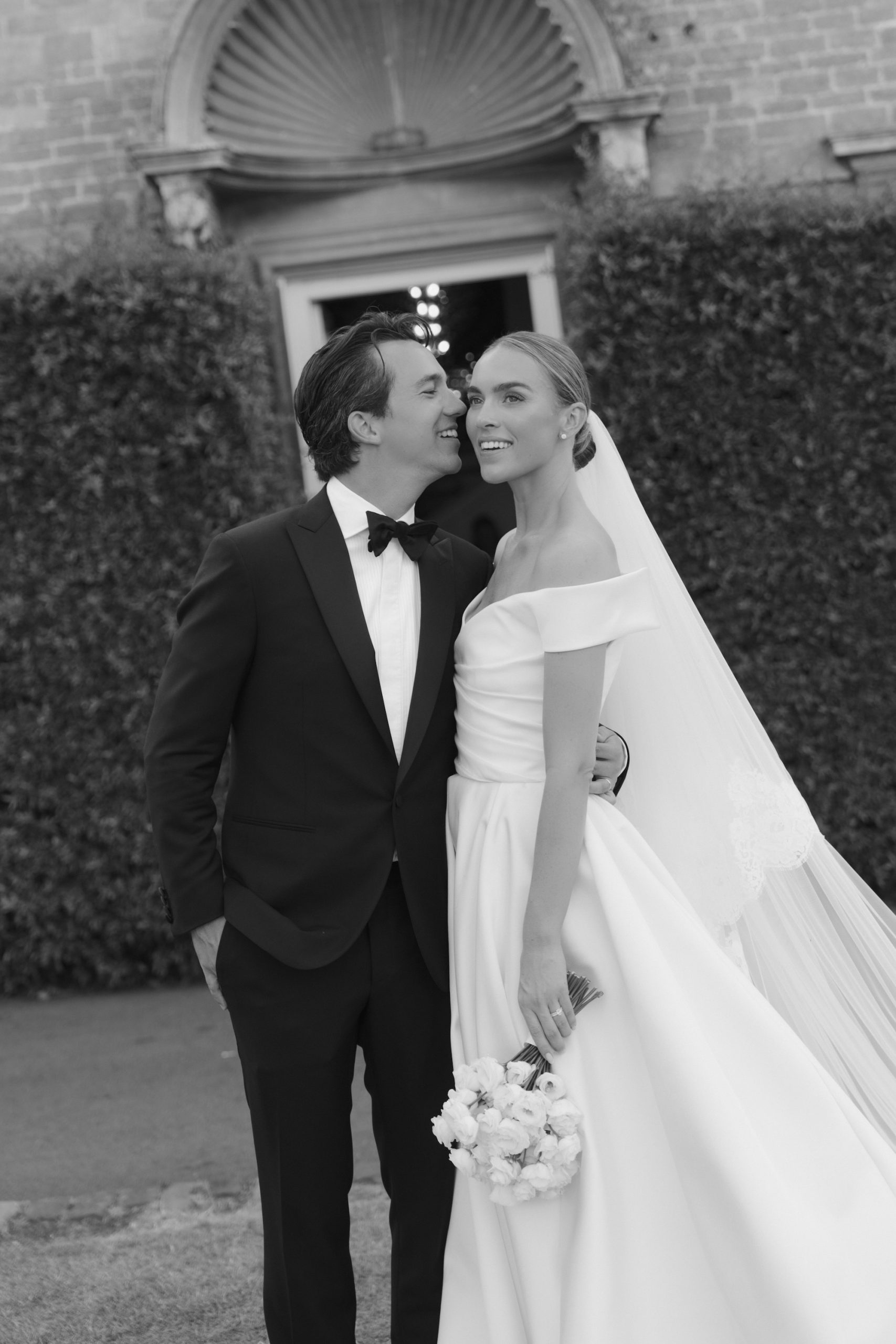 Het Engelse platteland wordt vaak geromantiseerd – en dat is terecht. De glooiende heuvels en de kleine dorpjes met de vele cottages maken het tot een plek geassocieerd met romcoms, zoals The Holiday. Het liefdesverhaal van Lauren Slijpen Dorjee en Dino Slijpen leest even goed als een romcom. Dus was het idee om hun bruiloft te vieren in het sfeervolle Babington House, een Georgisch landhuis in het hart van Somerset, niet meer dan passend.