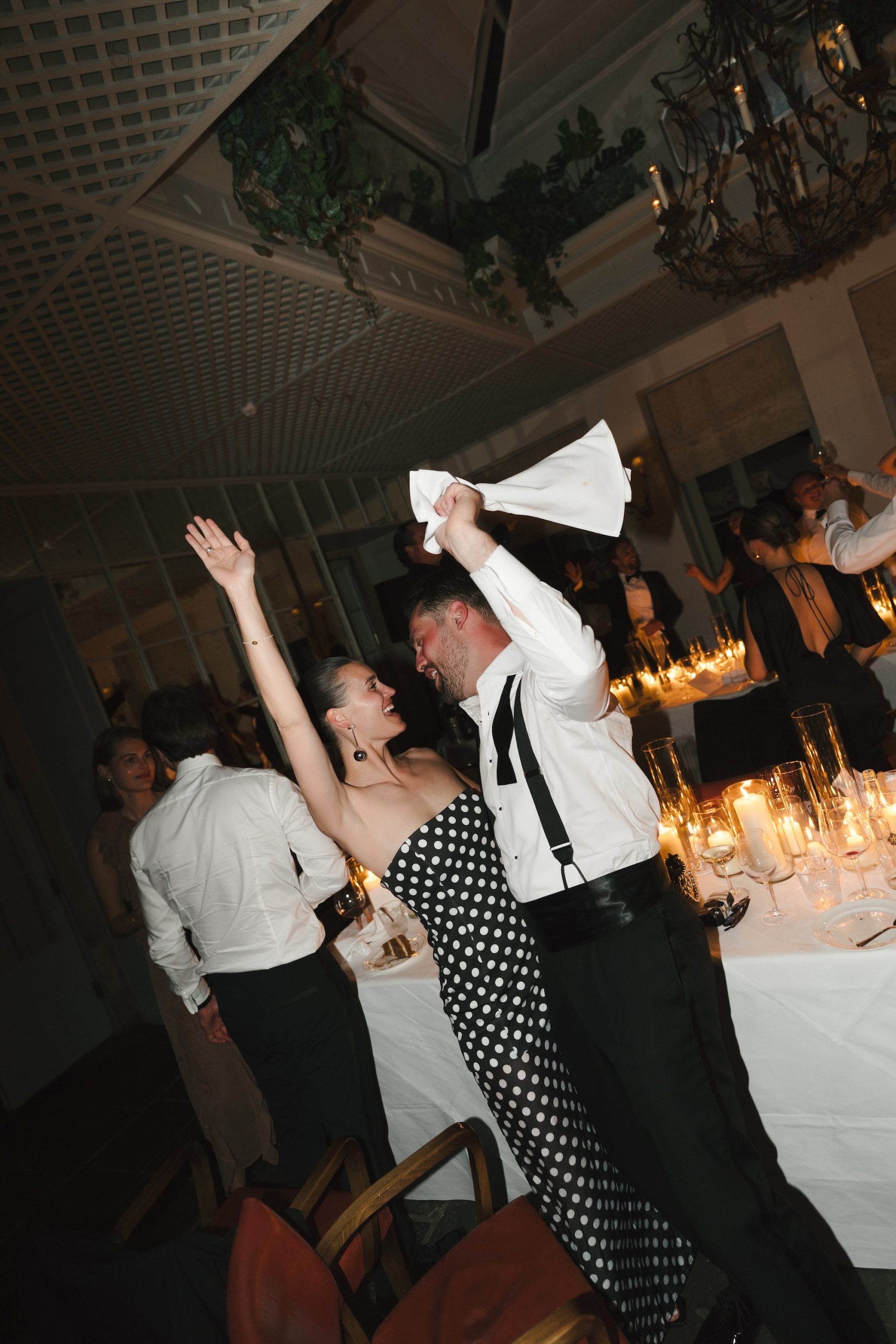 Al snel veranderde het diner in een groot feest: de servetten gingen de lucht in en iedereen stond op de stoelen. Lauren en Dino’s favoriete cocktails – Picantes en Soho Mules – werden geserveerd en tegen middernacht verschenen de midnight munchies.