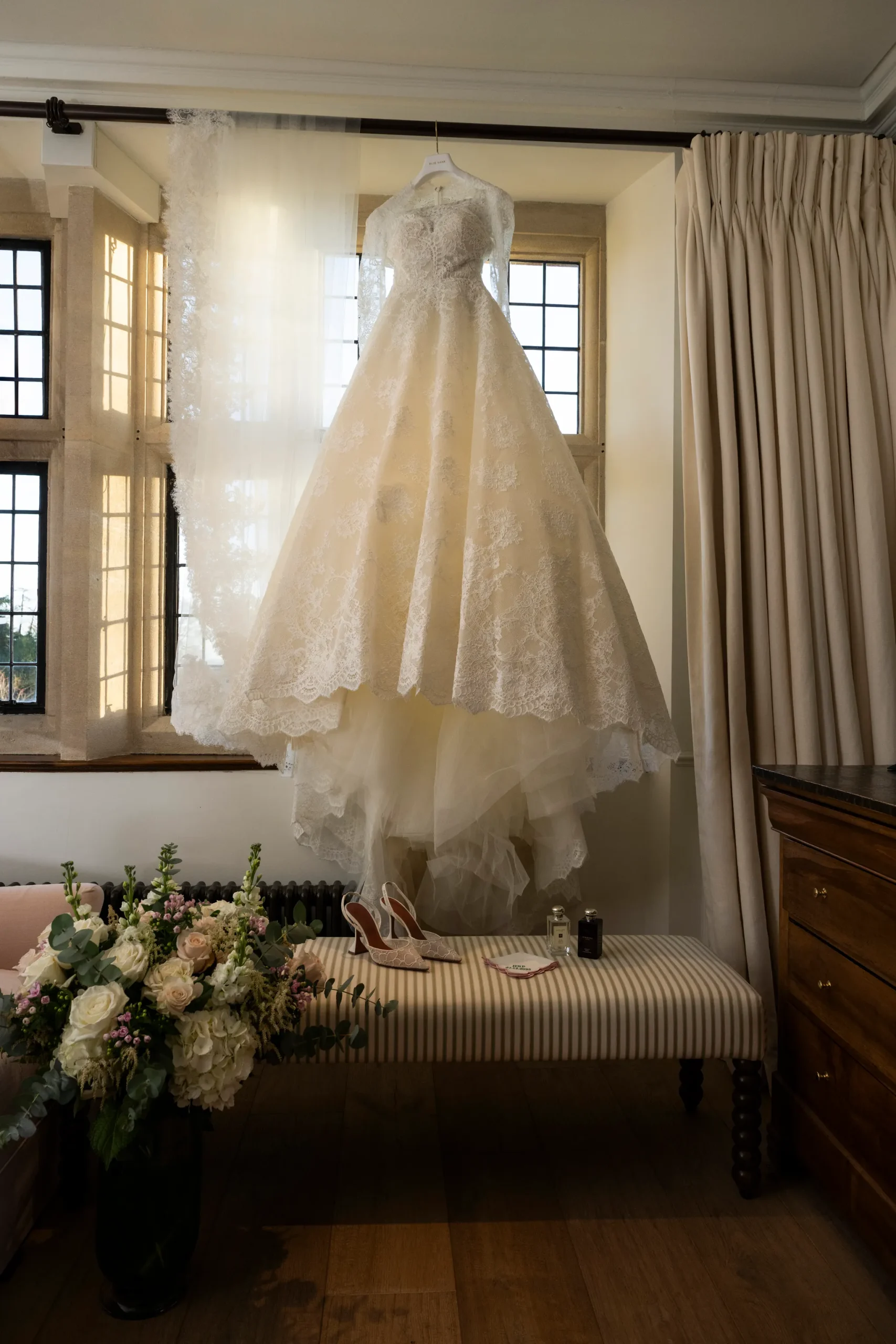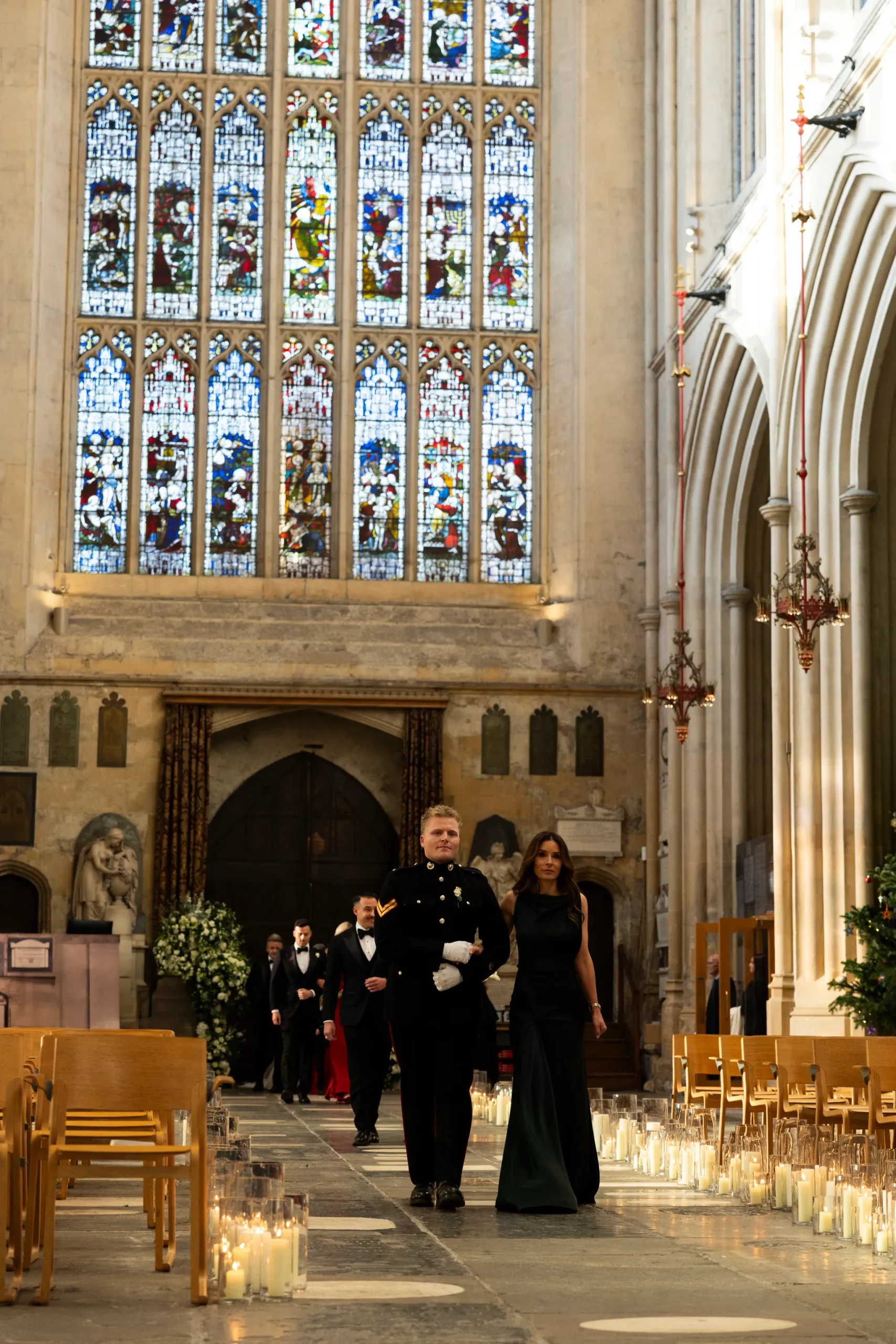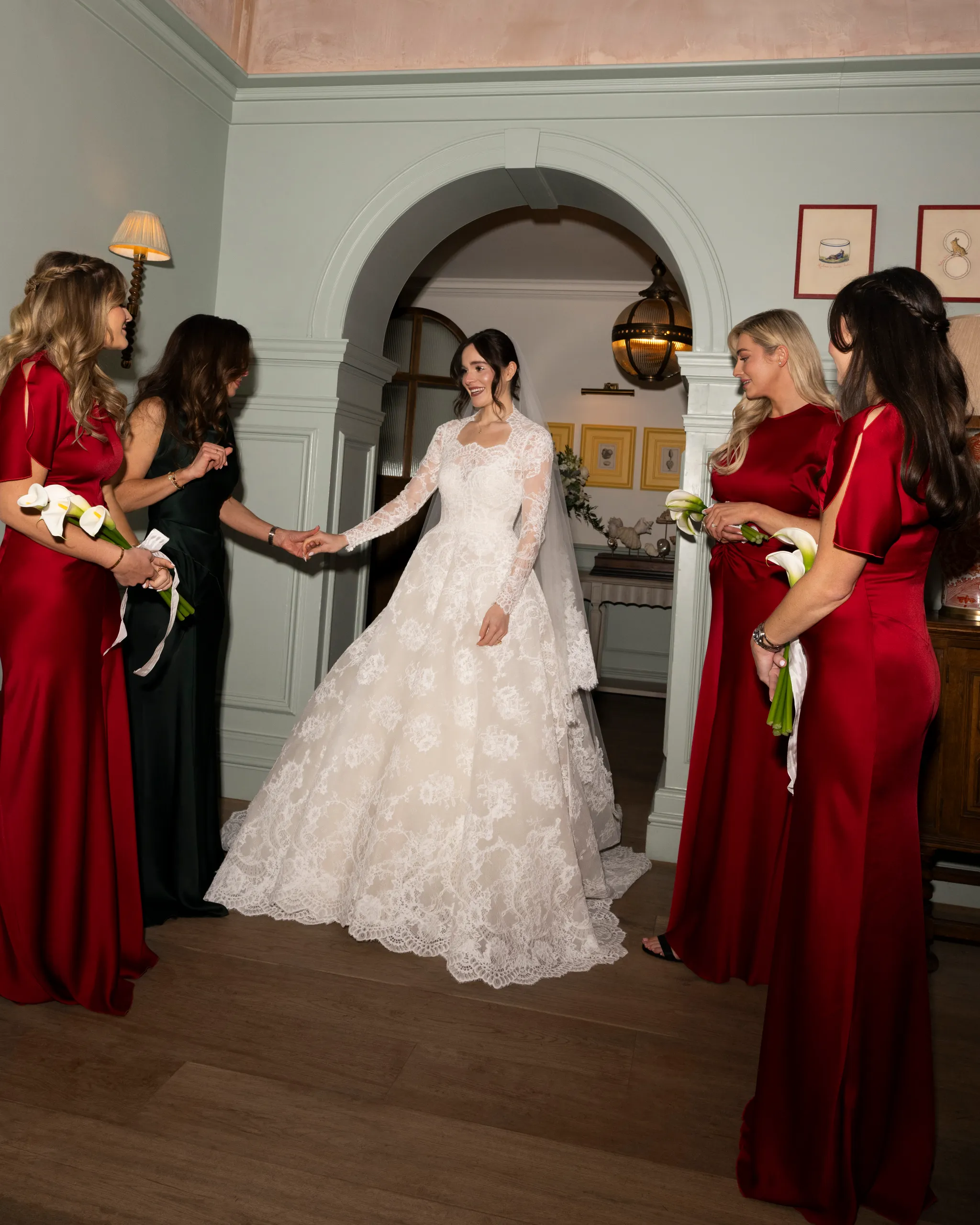 Toen Holly Ramsay en haar verloofde, de Olympische zwemmer Adam Peaty, de 13e-eeuwse Bath Abbey als locatie voor hun bruiloft kozen, wist de bruid dat ze een jurk nodig had die paste bij de gotische pracht en praal van de kerk. “Het gangpad van de abdij is 65 meter lang”, zegt Holly, wier vader de met een Michelinster bekroonde chef-kok en restauranthouder Gordon Ramsay is. “Het is zo groots en zo mooi… Ik wist dat ik iets langs nodig had!”
