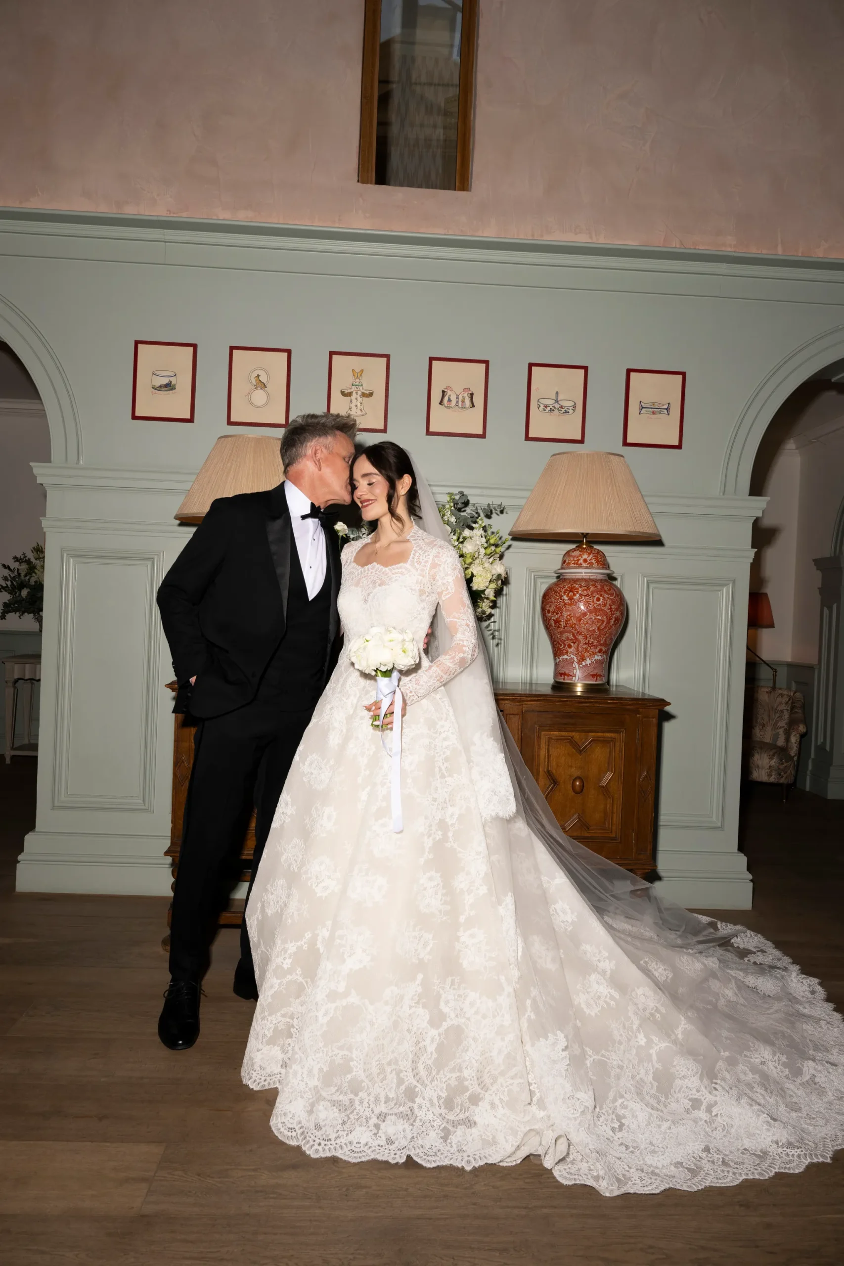Niemand heeft echter meer tranen gelaten dan haar vader, Gordon Ramsay. “Papa huilt elke keer als ik over de bruiloft praat”, zegt Holly liefdevol. Zij is de eerste van de zes kinderen van Ramsay die in het huwelijksbootje stapt. “Laatst vroeg ik hem met welke auto hij en ik naar de kerk zouden gaan, en hij kreeg meteen tranen in zijn ogen.” (De vader van de bruid vond het een leuk idee om in een van zijn sportwagens te rijden, maar uiteindelijk kozen ze voor een Rolls-Royce Phantom – beter voor de “logistiek” van Holly’s kanten sleep.)