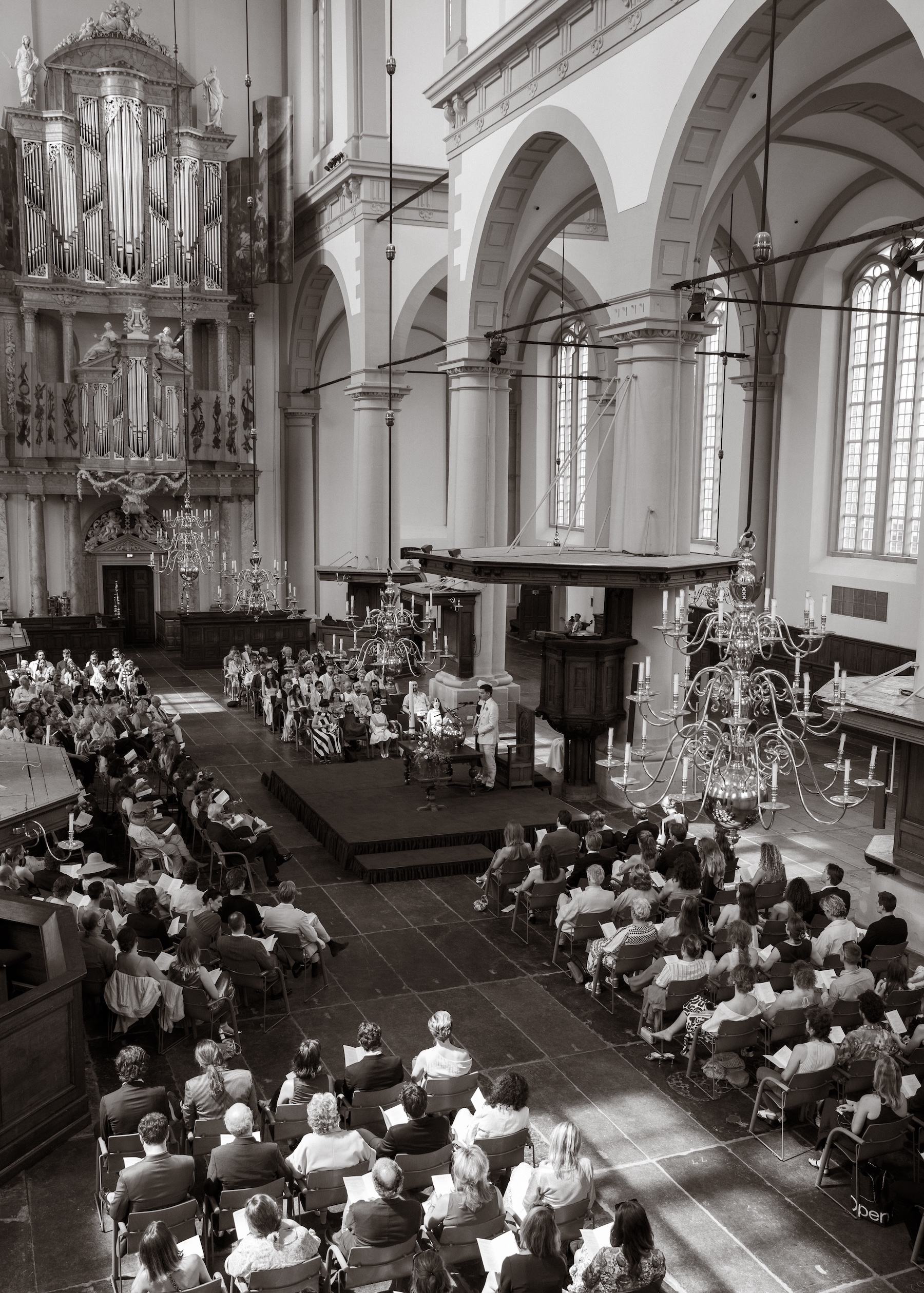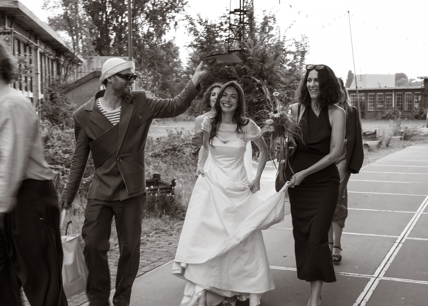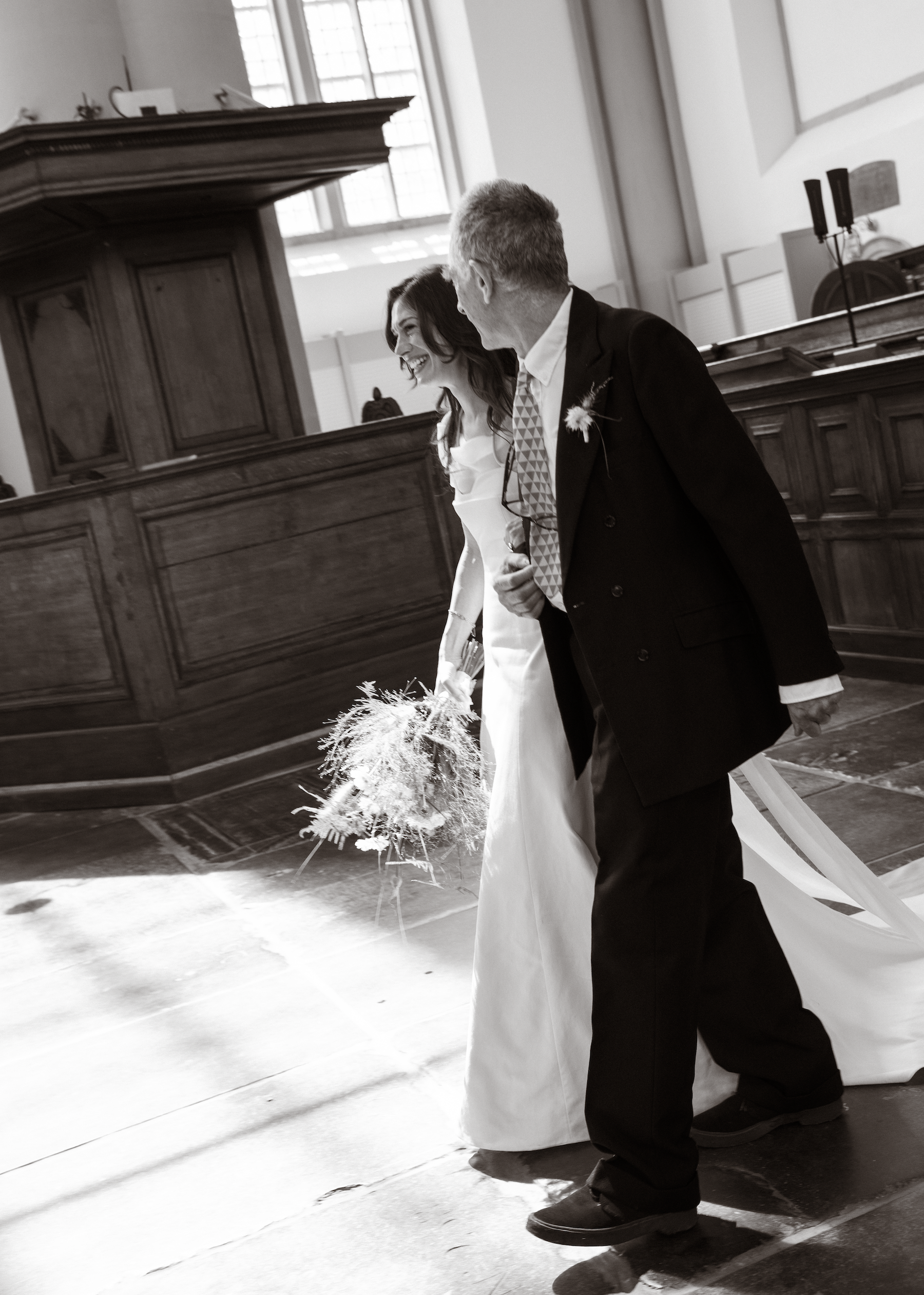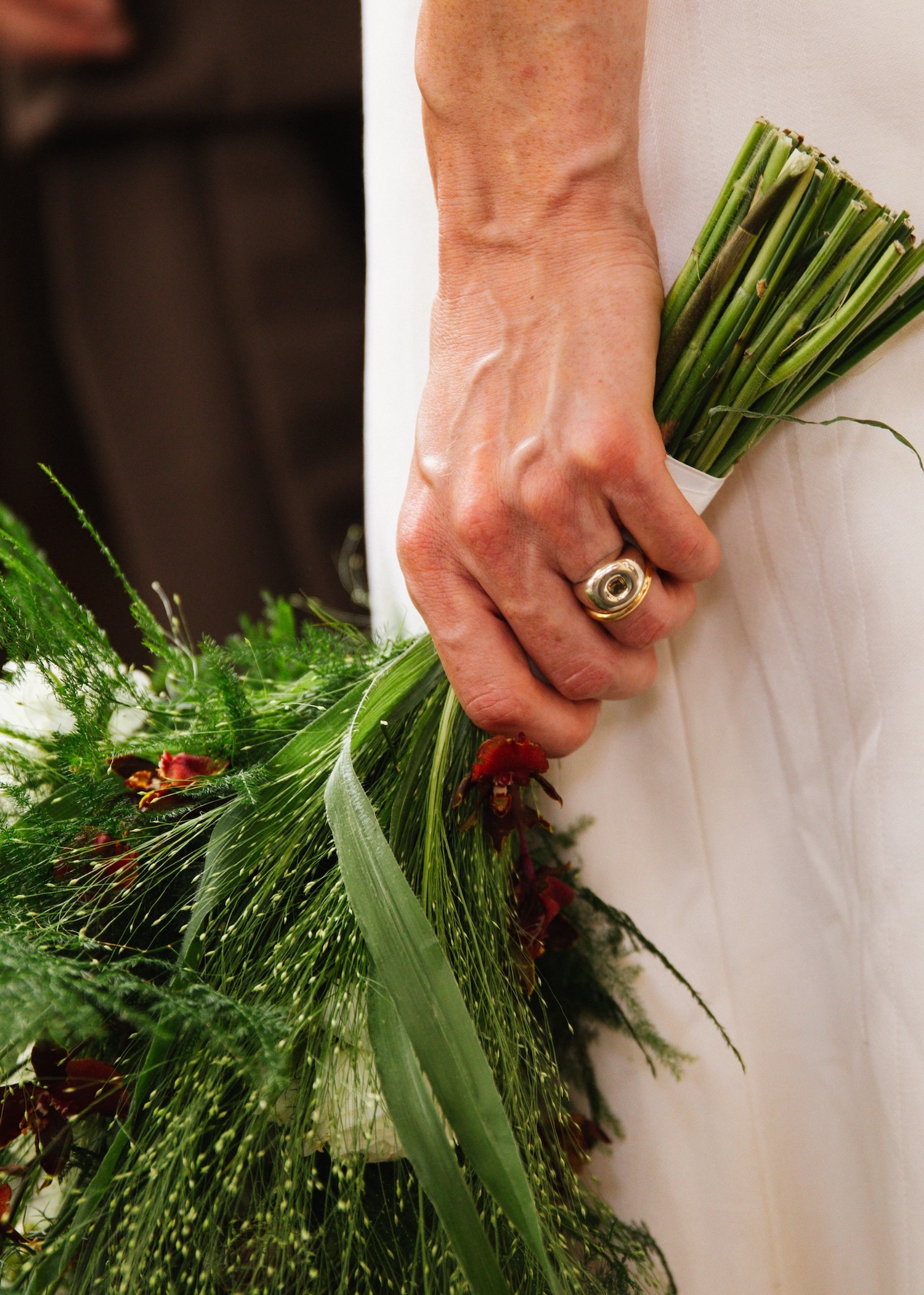 Galeriehouder en special project director Anna Kinneir en designer Johannes Offerhaus trouwden afgelopen zomer in hun thuisstad Amsterdam. Voor de bruiloft droegen zowel de bruid als de bruidegom looks van het Nederlandse modelabel Martan, hoewel het nooit de bedoeling was geweest dat Johannes ook Martan zou dragen. “Het team van Martan sprong bij en redde de dag door zijn pak in slechts drie dagen voor de bruiloft helemaal opnieuw te maken.”