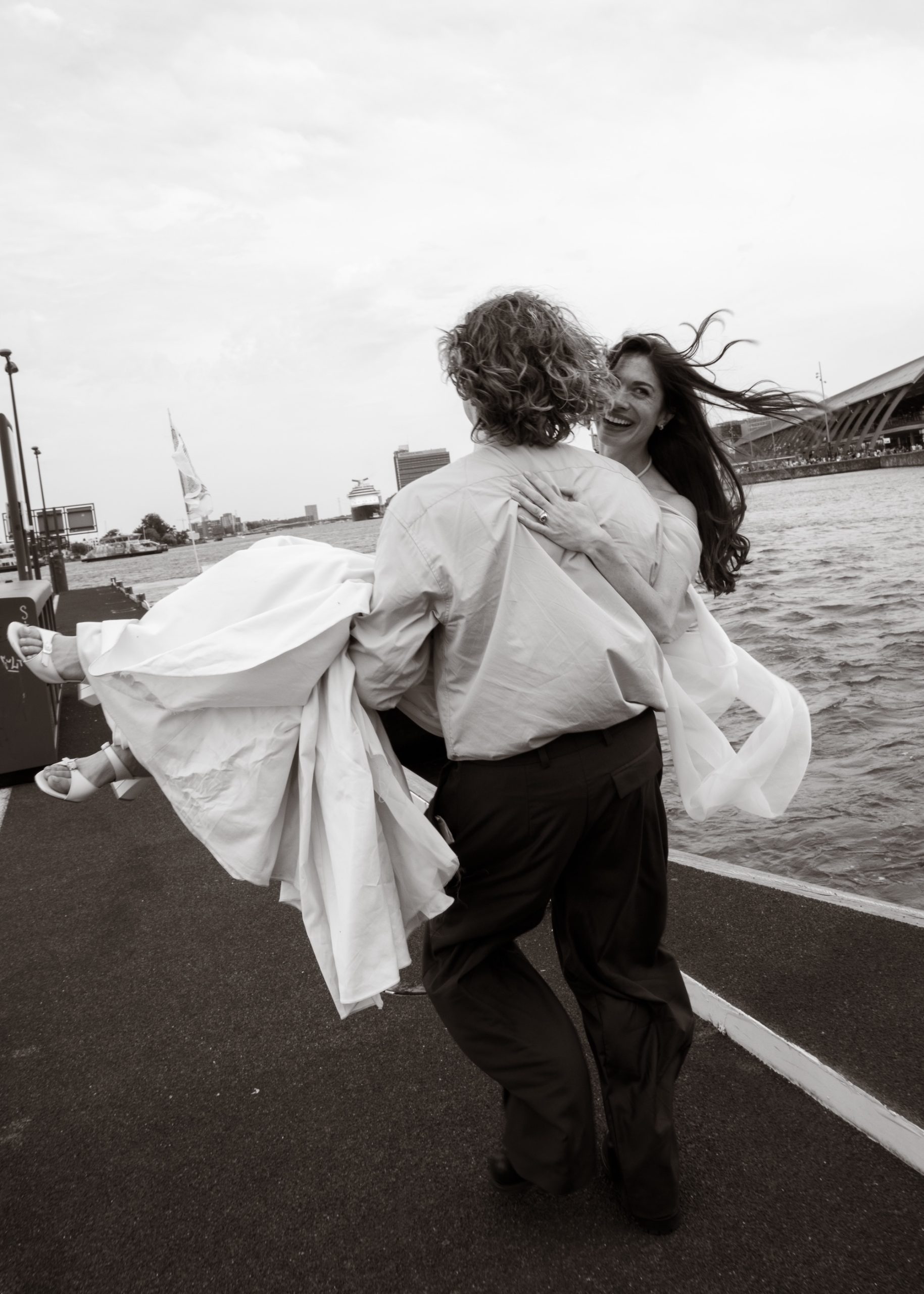 “Toen hoorde ik hem plotseling mijn volledige naam zeggen en wist ik het. Ik begon te huilen, en daarna deden we dat samen. Hij haalde een mooie, met de hand gesneden kist van ebbenhout tevoorschijn waar de ring in zat en begon met bevroren handen te proberen het touwtje los te maken dat het dicht hield. Het duurde een eeuwigheid! We bleven allebei lachen en huilen. Uiteindelijk schoof hij een prachtige ring – ontworpen door Jero Leeflang – om mijn vinger en zaten we in de sneeuw schnaps te drinken.”