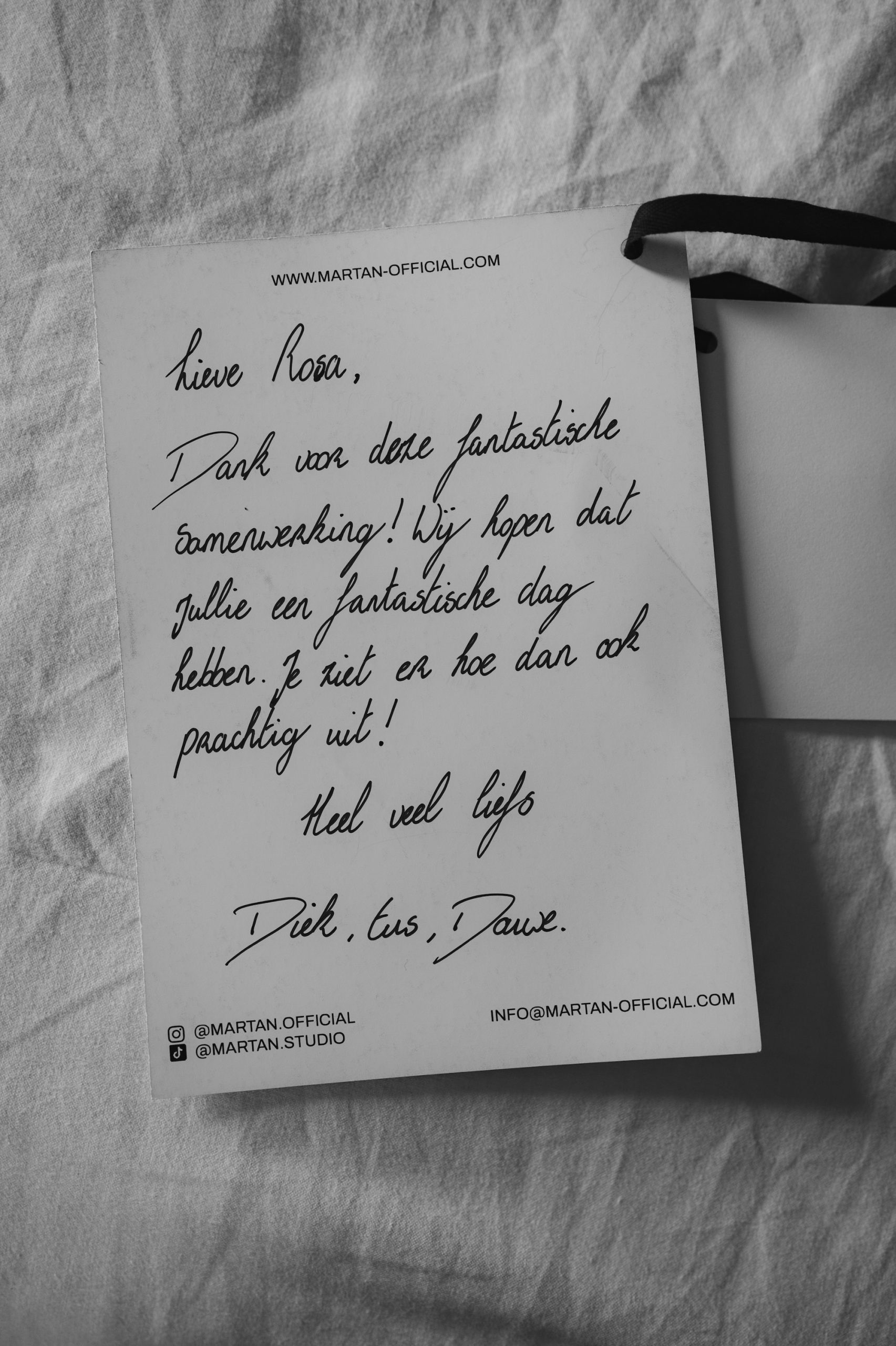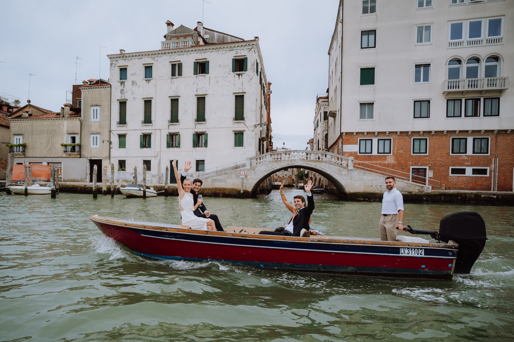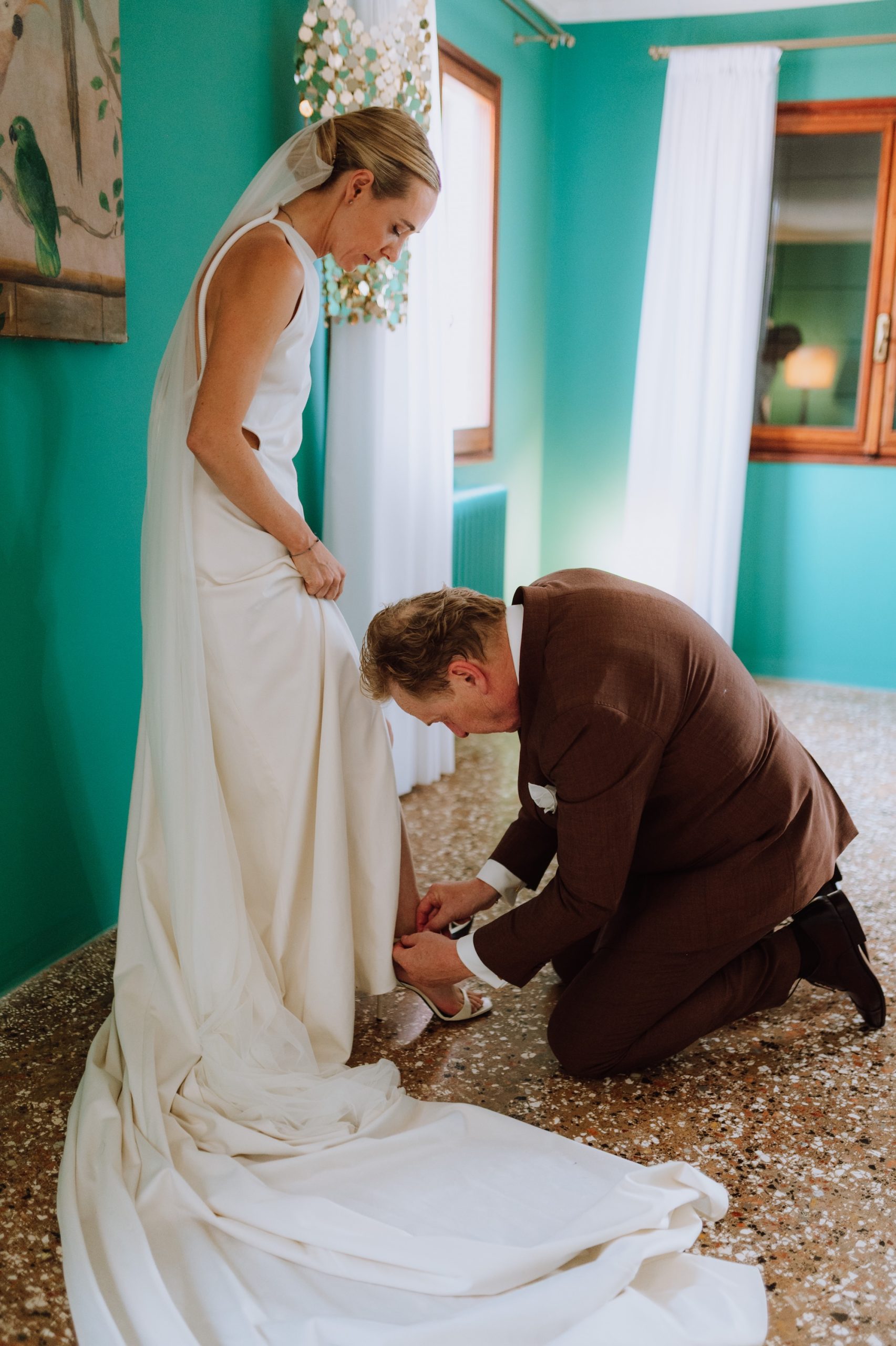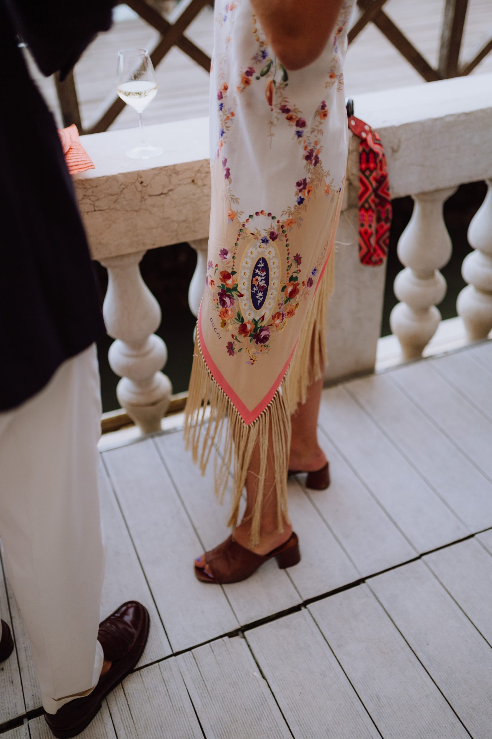 Het werd een driedaags feest van liefde en vriendschap, waarin ze alle facetten van hun uiteenlopende achtergronden wilden vieren. “We vertegenwoordigen drie culturen – Italiaans, Grieks en Nederlands – en wilden dat in alles laten terugkomen: van het eten tot de muziek, maar zeker ook in onze outfits en styling”, vertelt Rosa over het plannen van de bruiloft. “Door onze verschillende nationaliteiten lagen onze werelden ver uit elkaar. We wilden die werelden samenbrengen, vrienden en familie aan elkaar voorstellen, en daar wilden we de ruimte en tijd voor hebben. Daarom kozen we voor een heel weekend vol verrassingen. Elk onderdeel was zorgvuldig samengesteld om iets te delen: de Venetiaanse magie zoals wíj die als locals in onze tweede thuisstad beleven, verweven met de rijkdom van onze drie culturen.”
