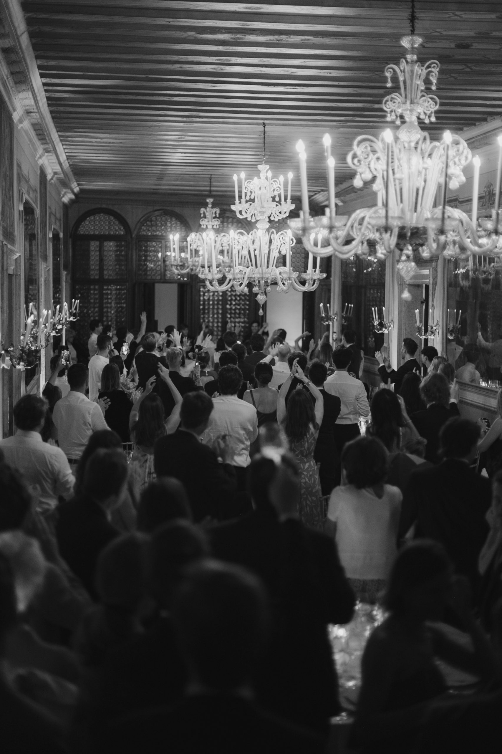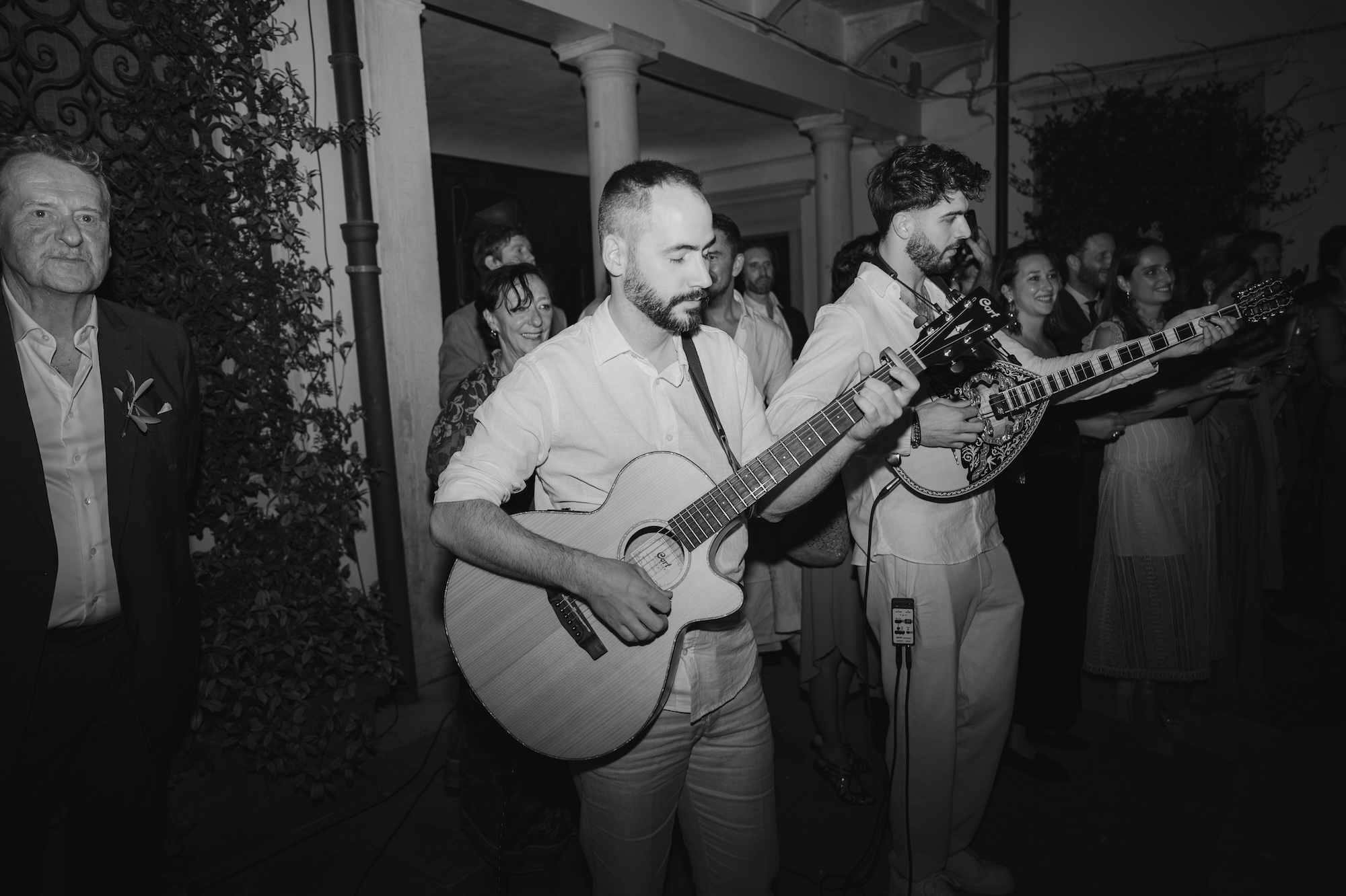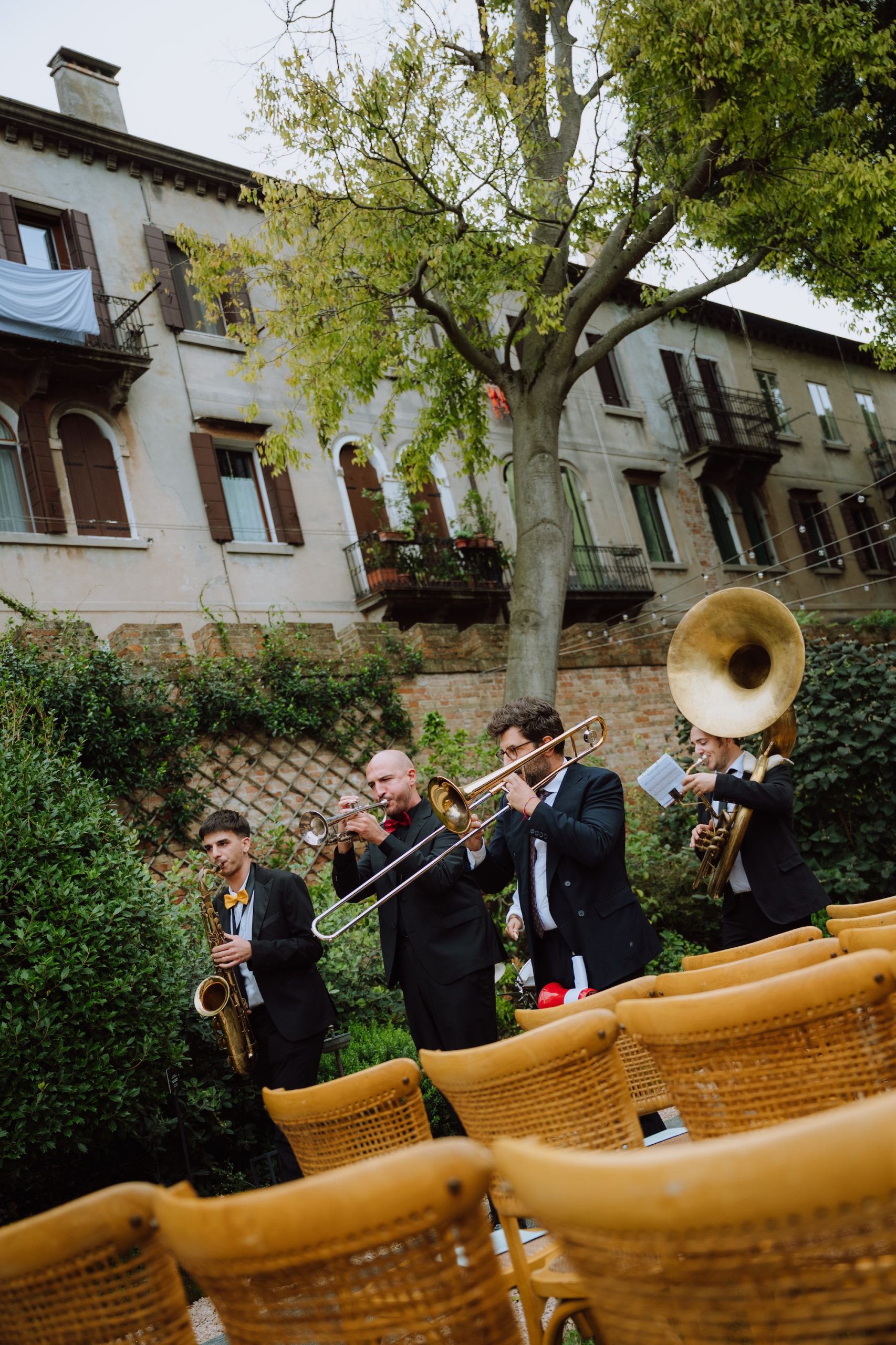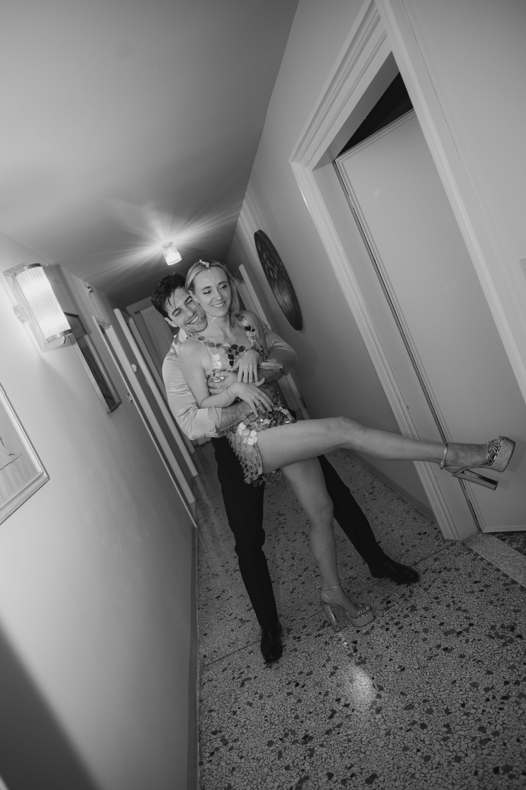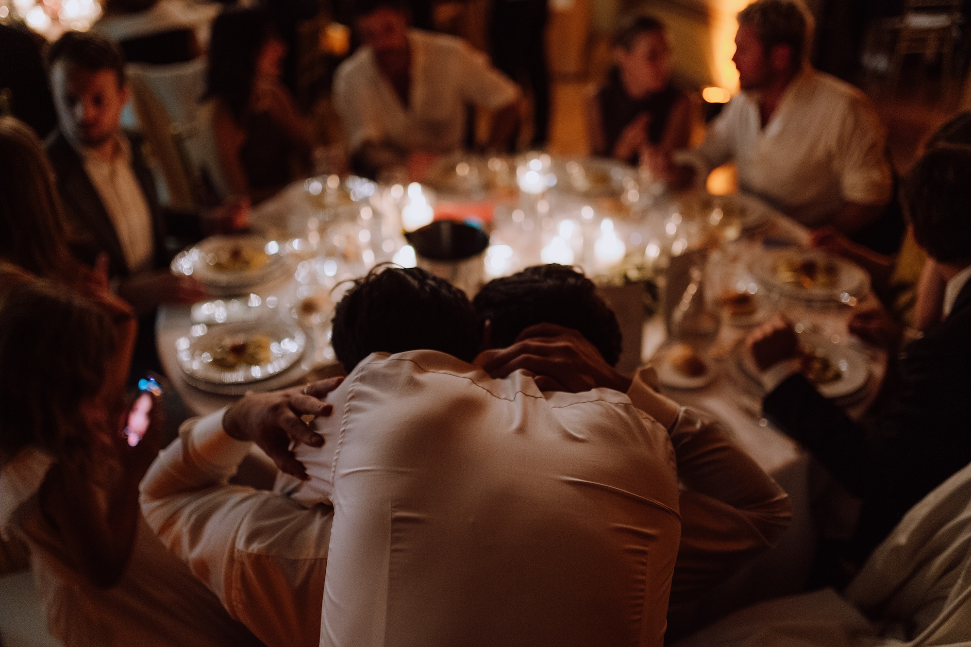 Het werd een driedaags feest van liefde en vriendschap, waarin ze alle facetten van hun uiteenlopende achtergronden wilden vieren. “We vertegenwoordigen drie culturen – Italiaans, Grieks en Nederlands – en wilden dat in alles laten terugkomen: van het eten tot de muziek, maar zeker ook in onze outfits en styling”, vertelt Rosa over het plannen van de bruiloft. “Door onze verschillende nationaliteiten lagen onze werelden ver uit elkaar. We wilden die werelden samenbrengen, vrienden en familie aan elkaar voorstellen, en daar wilden we de ruimte en tijd voor hebben. Daarom kozen we voor een heel weekend vol verrassingen. Elk onderdeel was zorgvuldig samengesteld om iets te delen: de Venetiaanse magie zoals wíj die als locals in onze tweede thuisstad beleven, verweven met de rijkdom van onze drie culturen.”