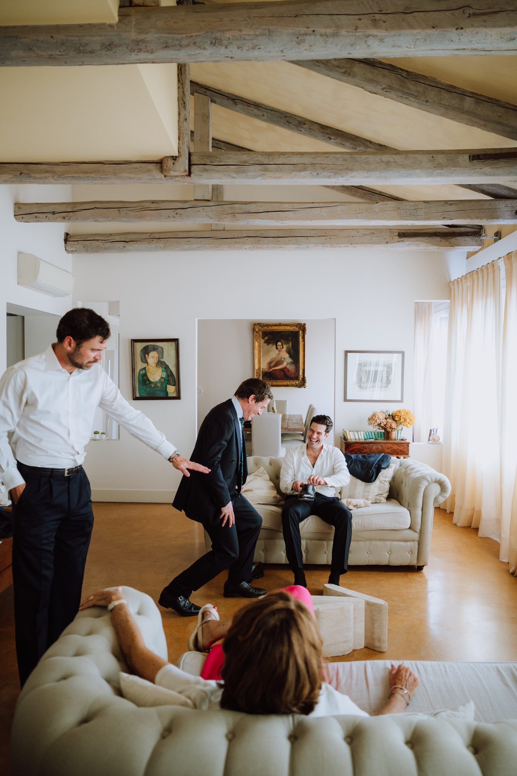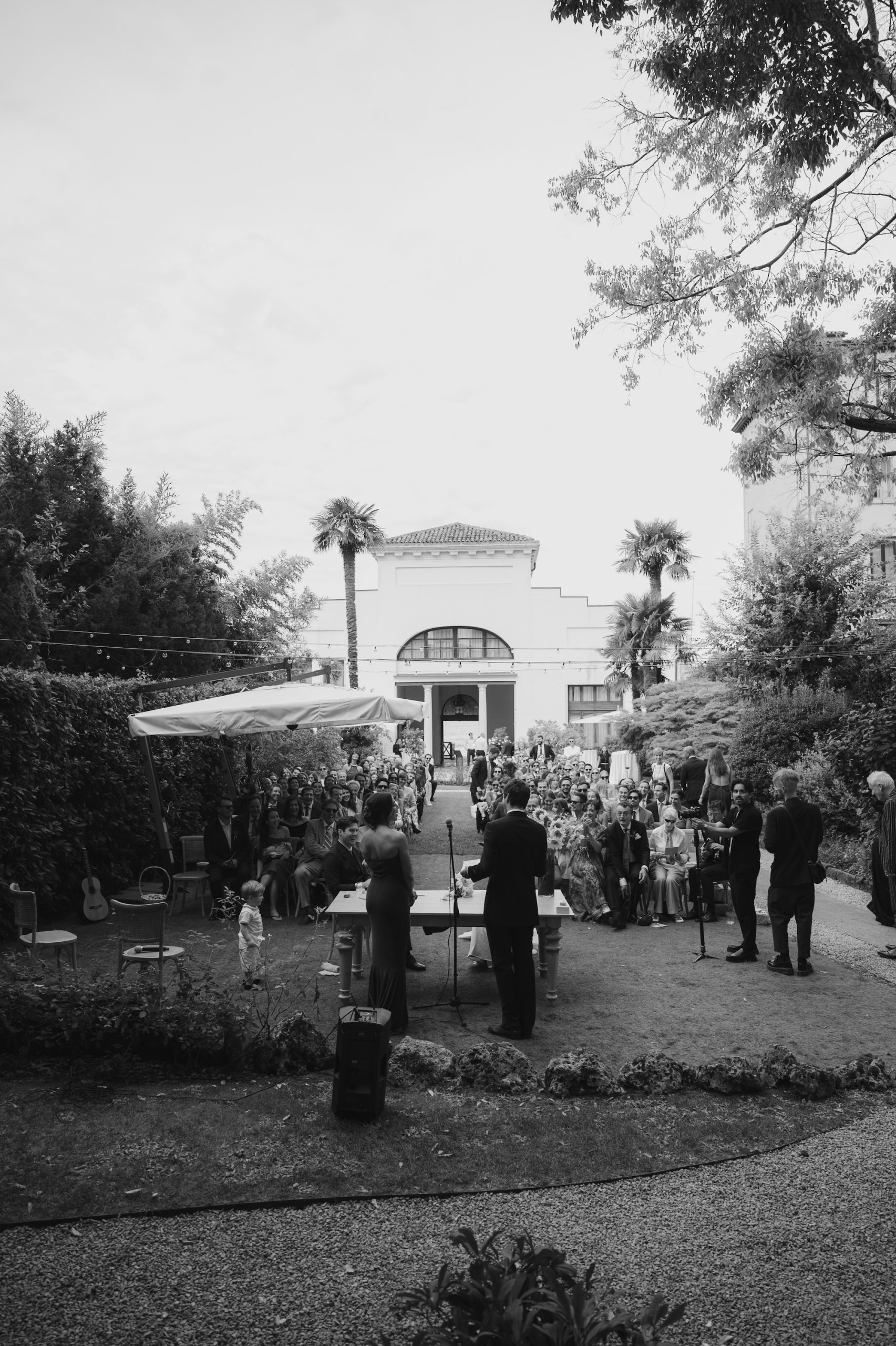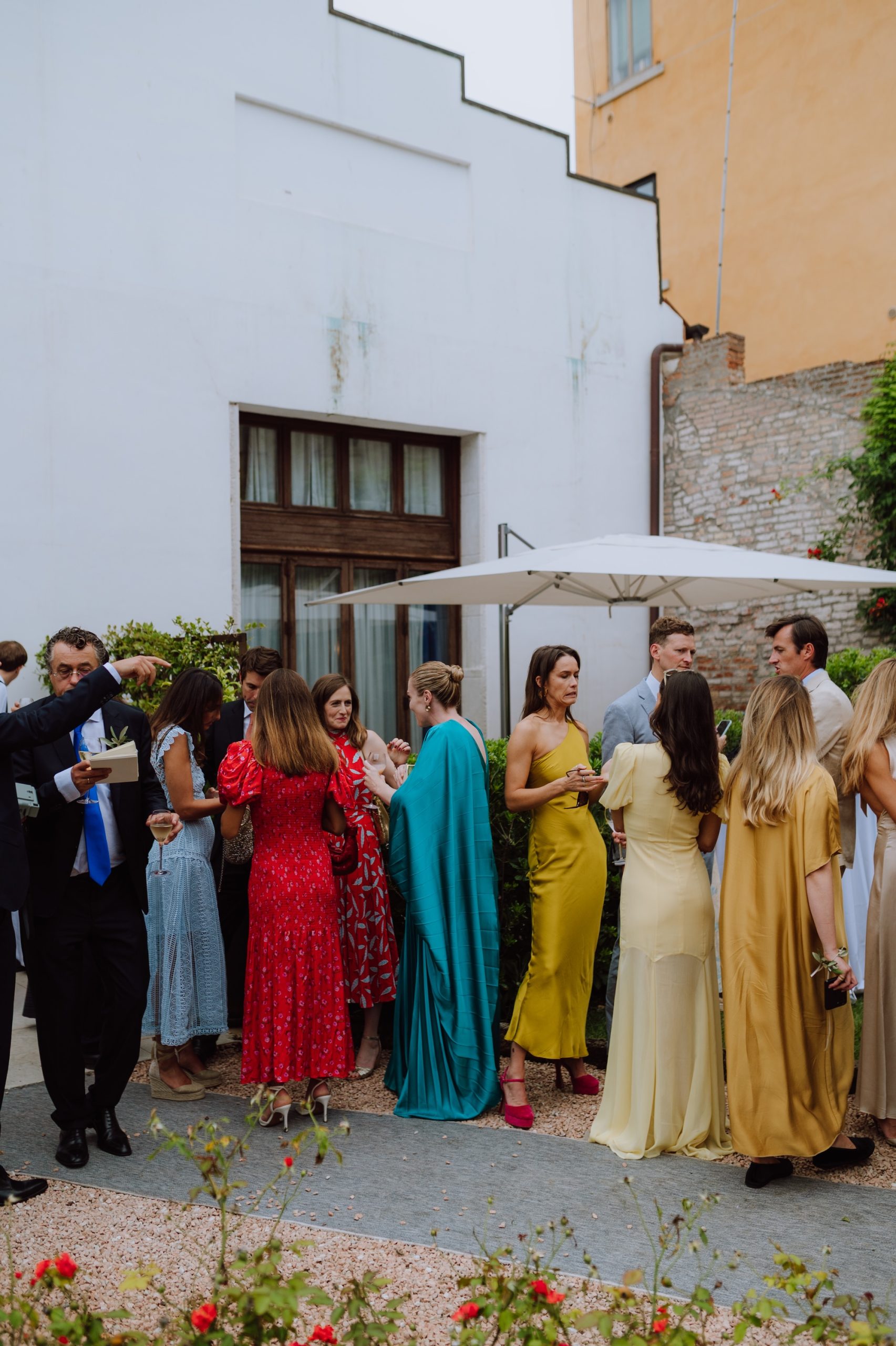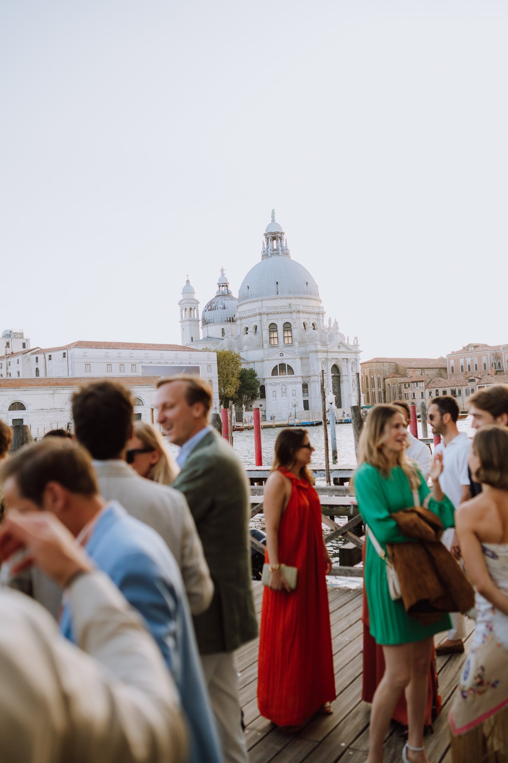 Het weekend begon met een aperitivo bij Ombra del Leone, in het Biennale-gebouw, met uitzicht op het water en Punta della Dogana. Familie en vrienden uit Amsterdam, Athene, Brussel, Londen en alle hoeken van de wereld – er waren meer dan twintig nationaliteiten aanwezig – kwamen samen. Het eten was specifiek Venetiaans en lokaal: cicchetti, verse vis uit de Venetiaanse lagune en tiramisu afkomstig uit de Veneto-regio.