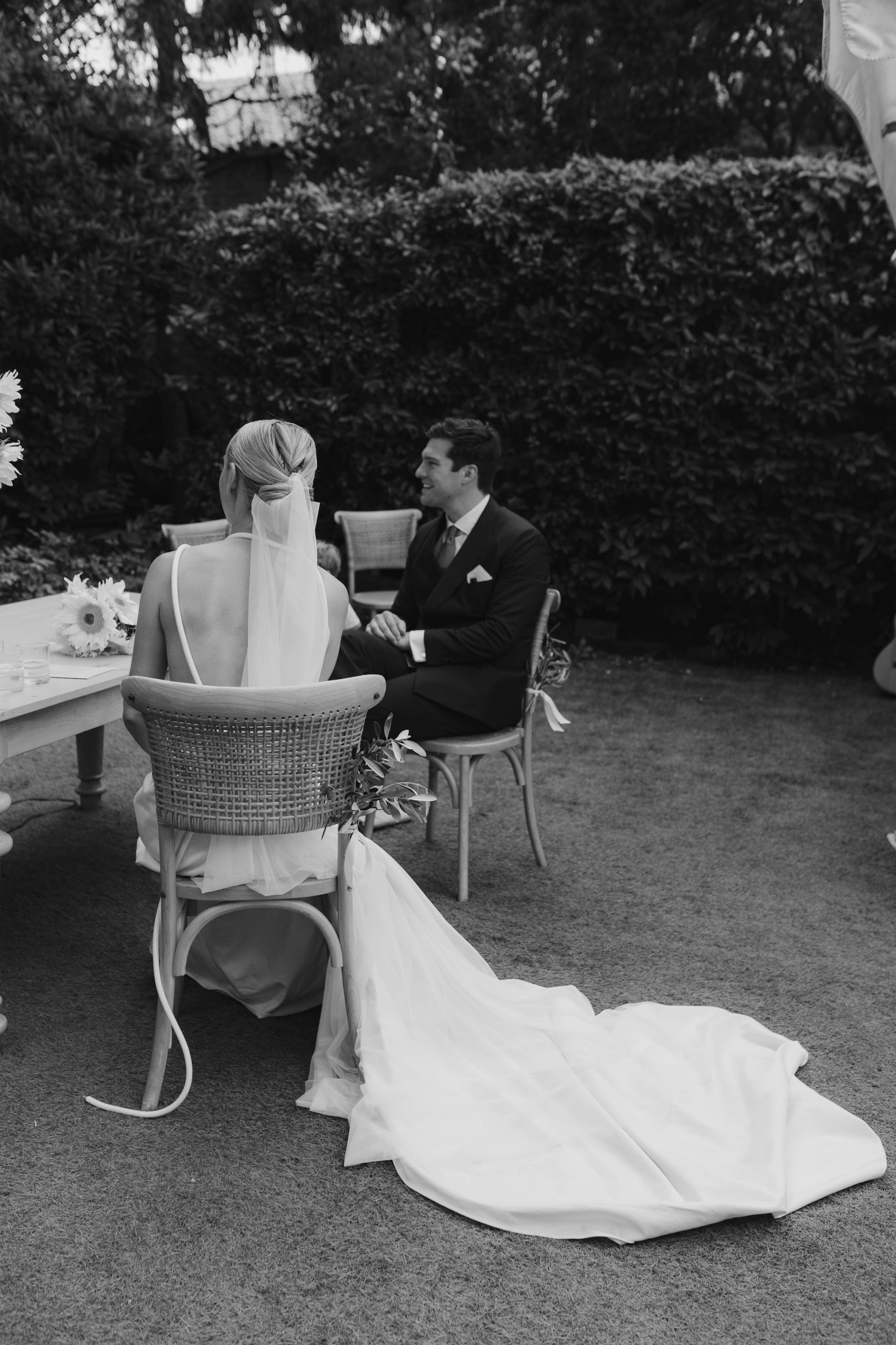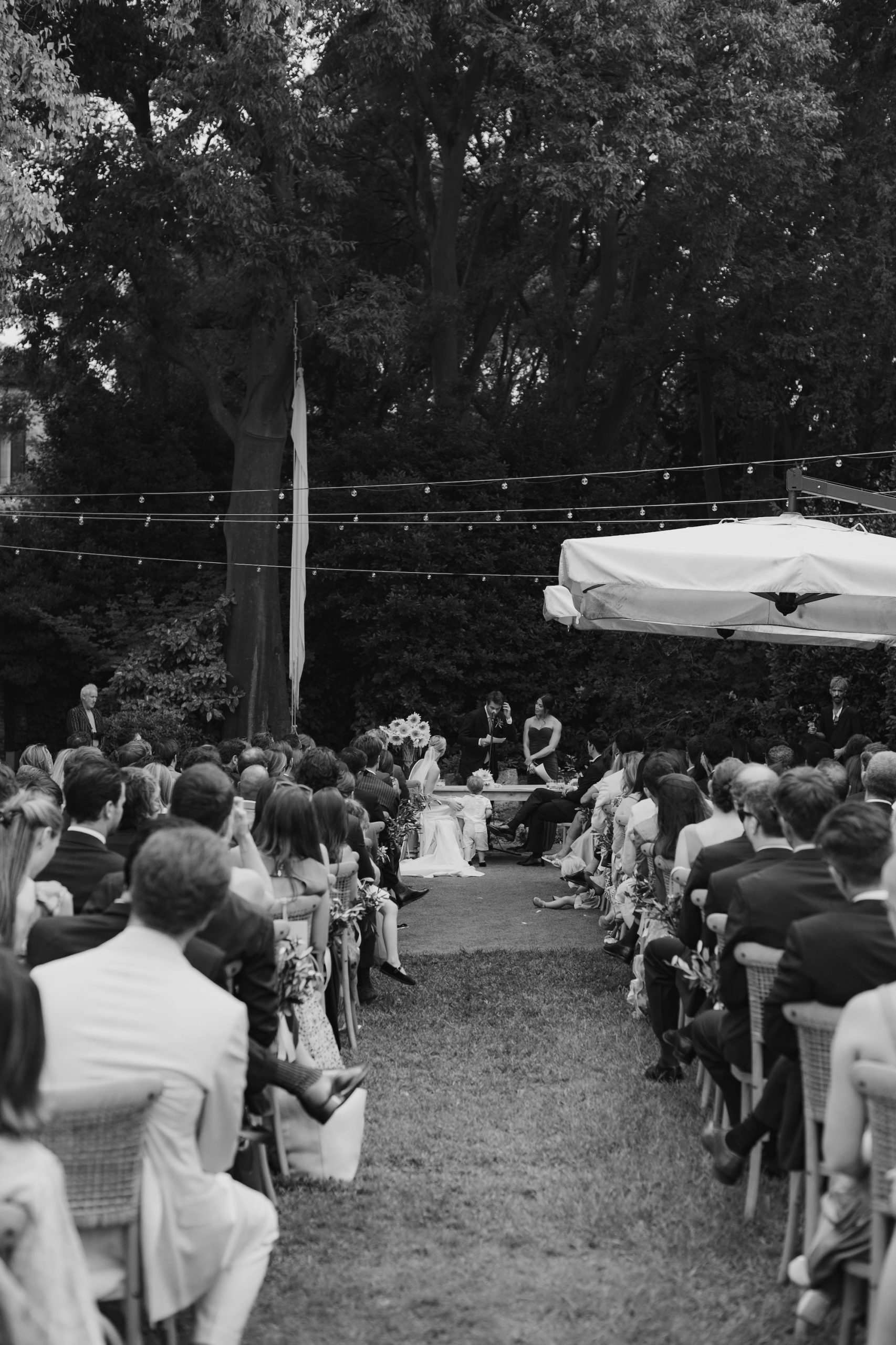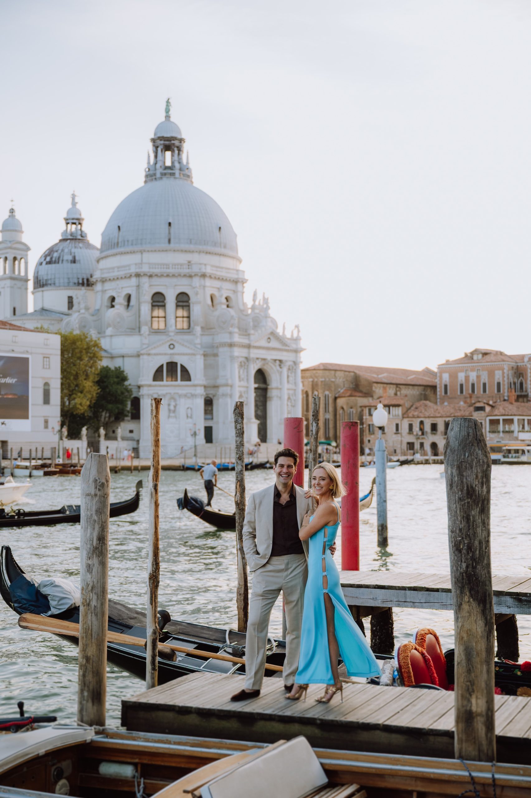 En als het goed zit, kan het snel gaan. Na nog geen jaar samenzijn vroeg Andreas Rosa ten huwelijk, met een verlovingsring die al generaties lang in zijn familie is. Andreas wilde haar in eerste instantie vragen op een van hun favoriete plekken in Venetië (waar ze tijdens covid een tijd woonden): Punta della Dogana, het voormalige douanekantoor dat vandaag de dag een uitkijkpunt is. Helaas was dit wegens covid niet mogelijk. (Uiteindelijk kreeg Punta della Dogana alsnog een plek in de bruiloft: het bruidspaar organiseerde hun welkomstaperitivo aan de overkant van het water met uitzicht op het gebouw.) In plaats daarvan verloofden de twee zich in Amsterdam op 1 december 2022, de dag dat ze de sleutels van hun nieuwe huis kregen – in een leeg huis, zonder licht en verwarming. “Juist de puurheid en intimiteit van dat moment maakten het aanzoek perfect in al zijn eenvoud, en daarmee onvergetelijk.”