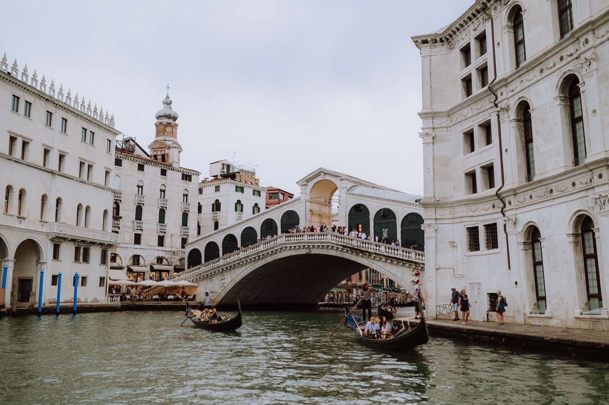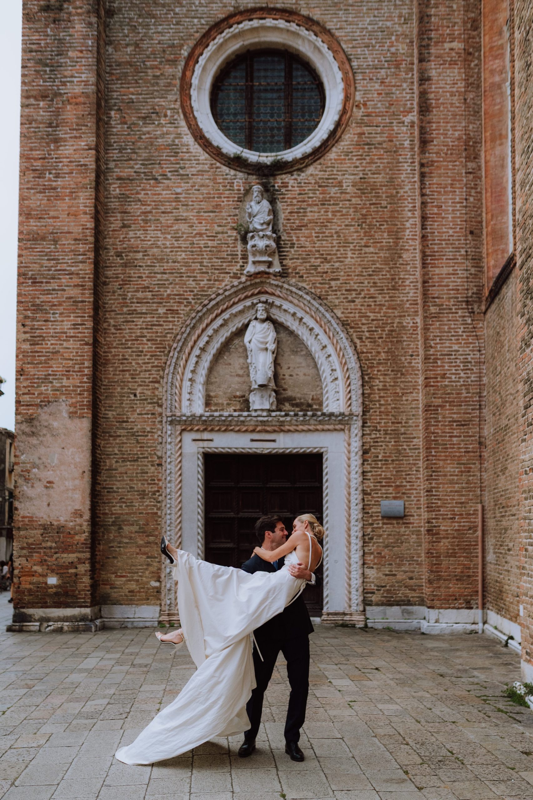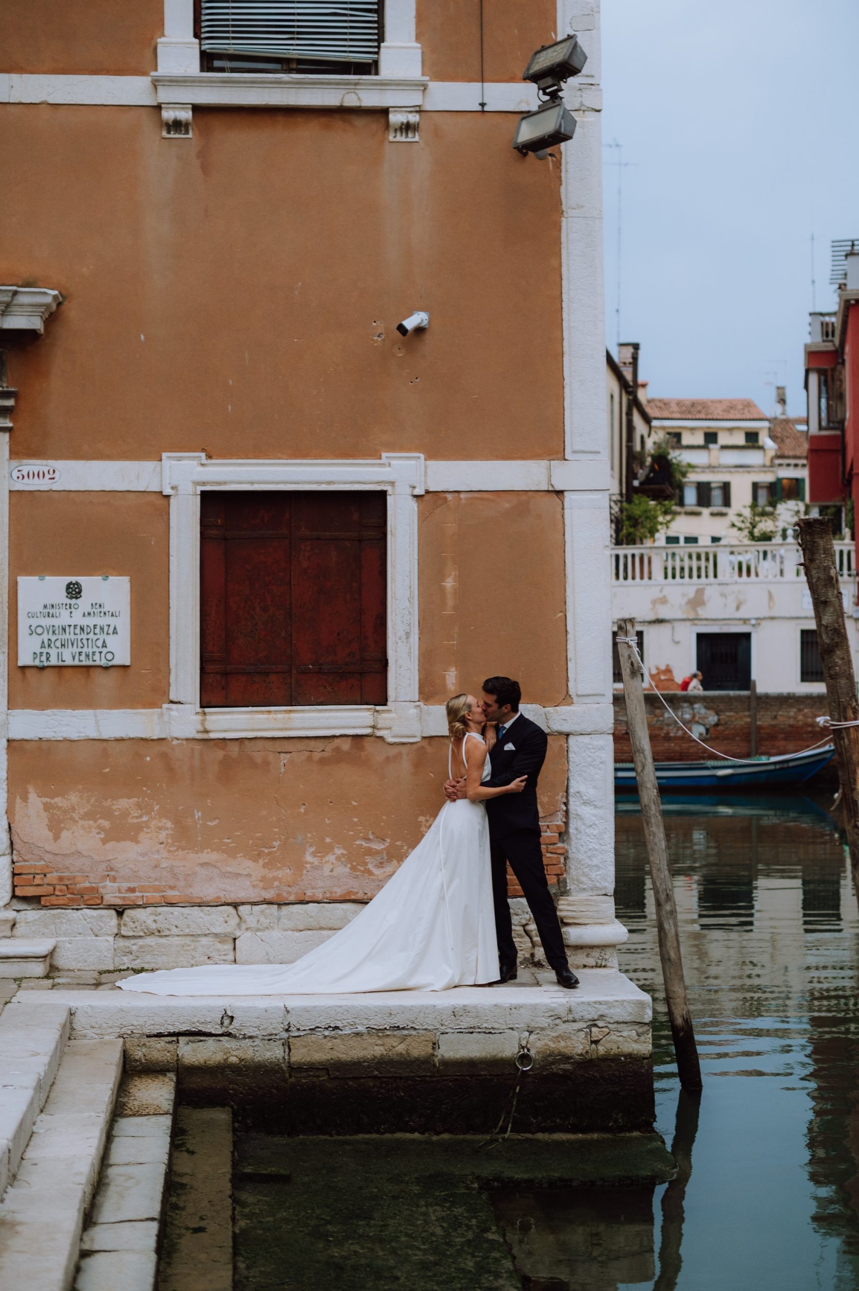Als we aan een destination wedding in Italië denken, verschijnen er al snel beelden van glooiende Toscaanse heuvels, overdadige palazzo’s en idyllische kustlijnen op ons netvlies. Maar dat juist ook steden zich lenen voor romantiek, bewijzen de Nederlandse Rosa Dinnissen en de Italiaans-Griekse Andreas Vitsentzatos. Zij vierden hun bruiloft in Venetië, waar drie culturen – en nog veel meer nationaliteiten – samenkwamen.