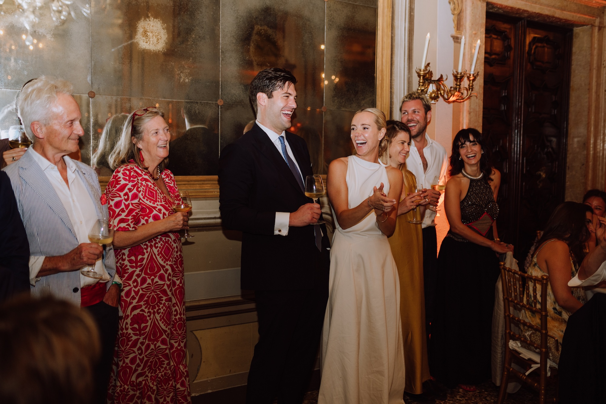 Een jaar later trouwden Rosa en Andreas voor de wet in Amsterdam, gevolgd door een intiem diner met alleen hun ouders en de getuigen bij hun favoriete restaurant Rijsel. Toch wilden de twee nog een groot feest geven – en dus vierden ze hun bruiloft in Venetië, de stad die hun tweede thuis werd en tevens de geboorteplaats van de moeder van Andreas en woonplaats van zijn ouders is.