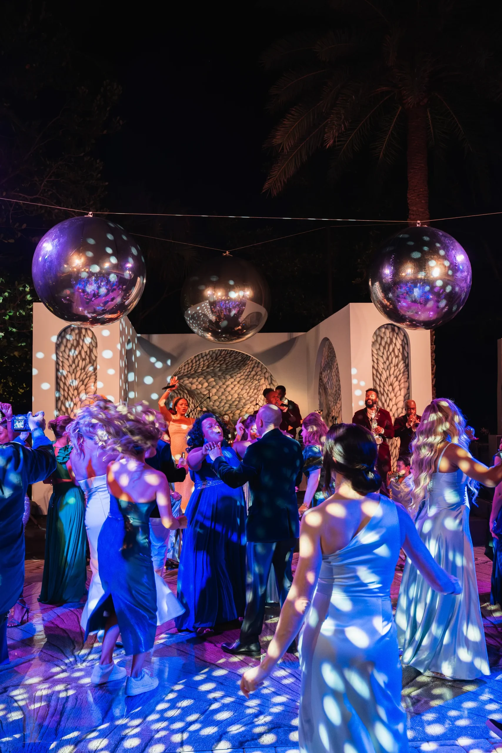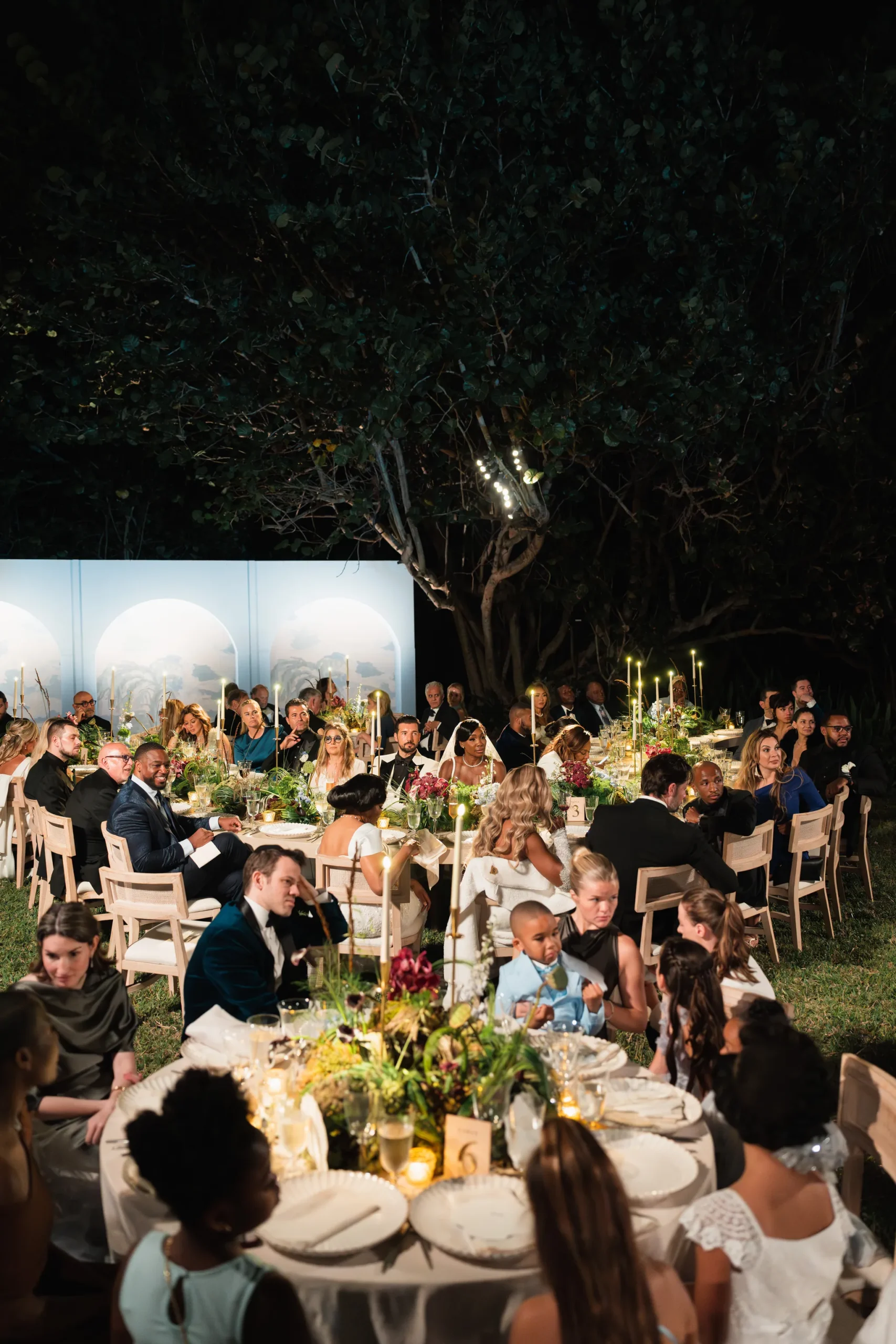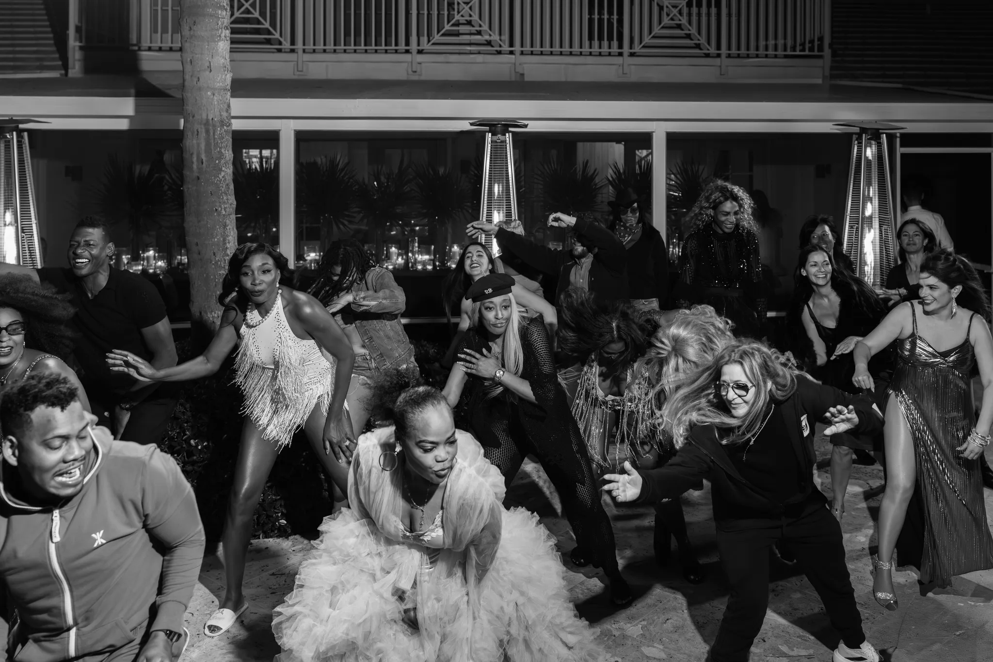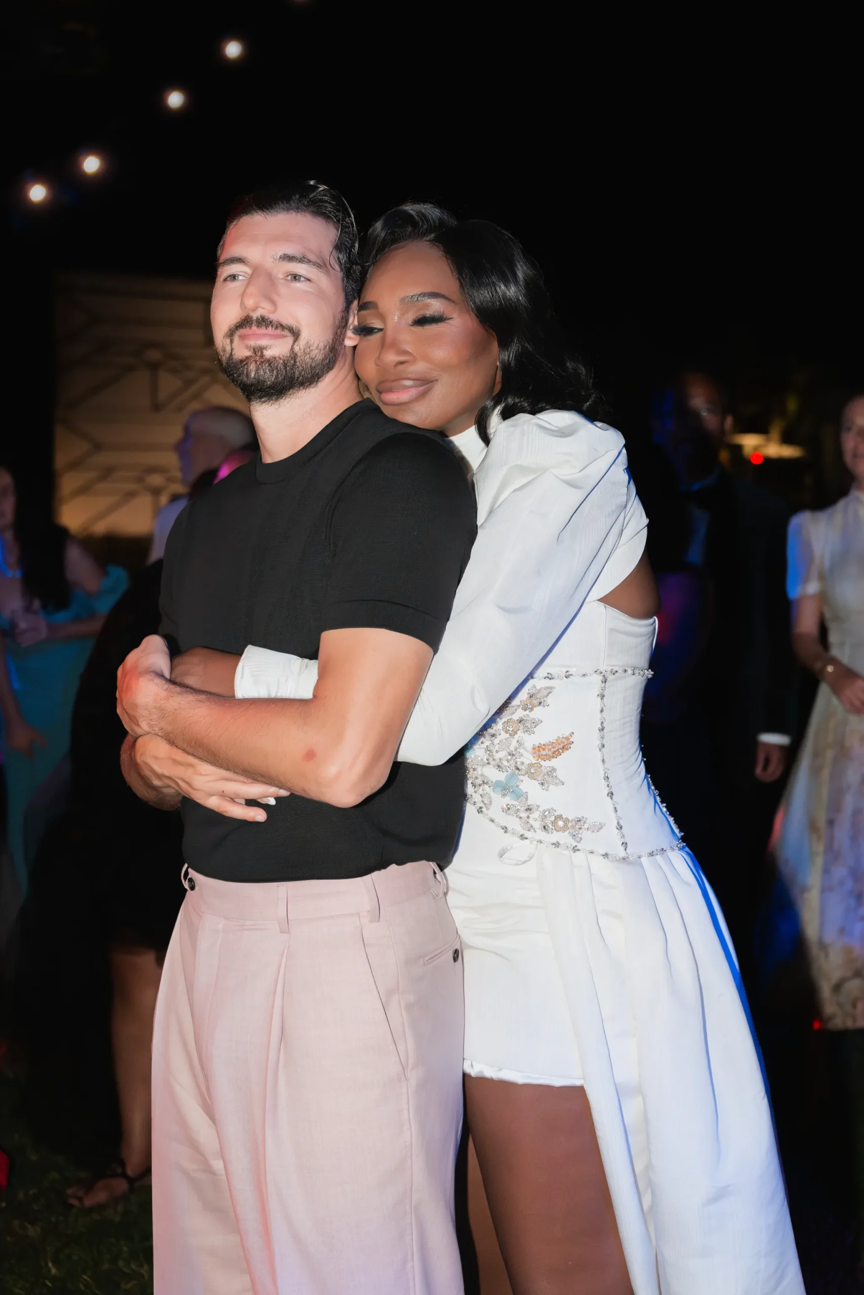 Na het diner en het dansen bracht een bus iedereen naar de afterparty. “Andrea ging slapen – God zegene hem”, zegt Venus. “Hij moest even rusten met onze hond. Maar ik ging wel mee. Ze draaiden Sexyy Red en French Montana, en we dansten in de bus.” Na tot in de vroege uurtjes te hebben gedanst in Sophia’s Hobe Sound, werd de groep uiteindelijk om twee uur ’s nachts “eruit gegooid”, herinnert Venus zich lachend. “We houden allemaal zoveel van elkaar”, voegt ze eraan toe. “Het was gewoon de gelukkigste, mooiste en liefste dag.”
