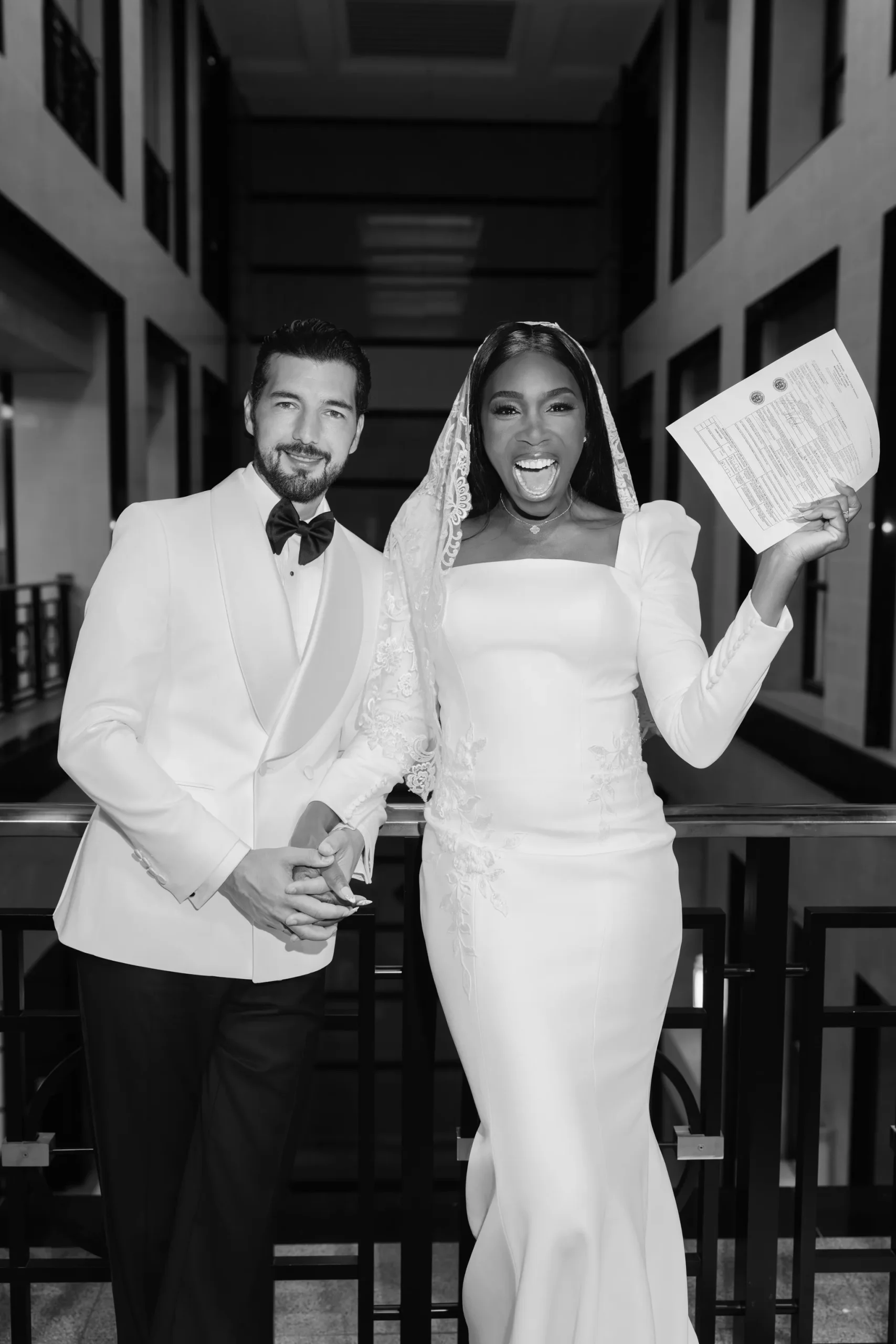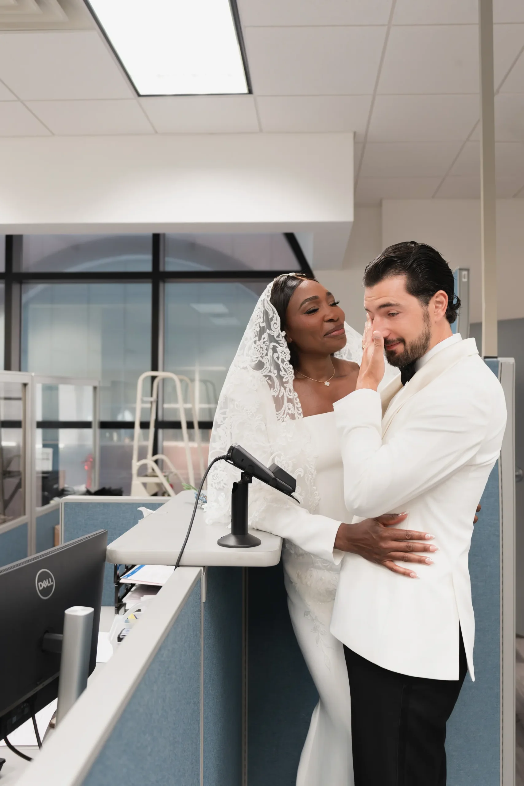 De jurk die ze naar het stadhuis droeg, was van Morilee New York. “Ik vroeg om één jurk”, herinnert Venus zich. “Ze maakten tien jurken, allemaal op maat. De jurk die ik uiteindelijk droeg, was goddelijk. Ik had ook een outfit om te dragen toen we vertrokken, zodat ik geen aandacht op mezelf zou vestigen. Het was een klassieke korte rok en top, en ik had er het perfecte hoofdaccessoire bij. Daarna hebben we ontbeten en begon onze dag.”