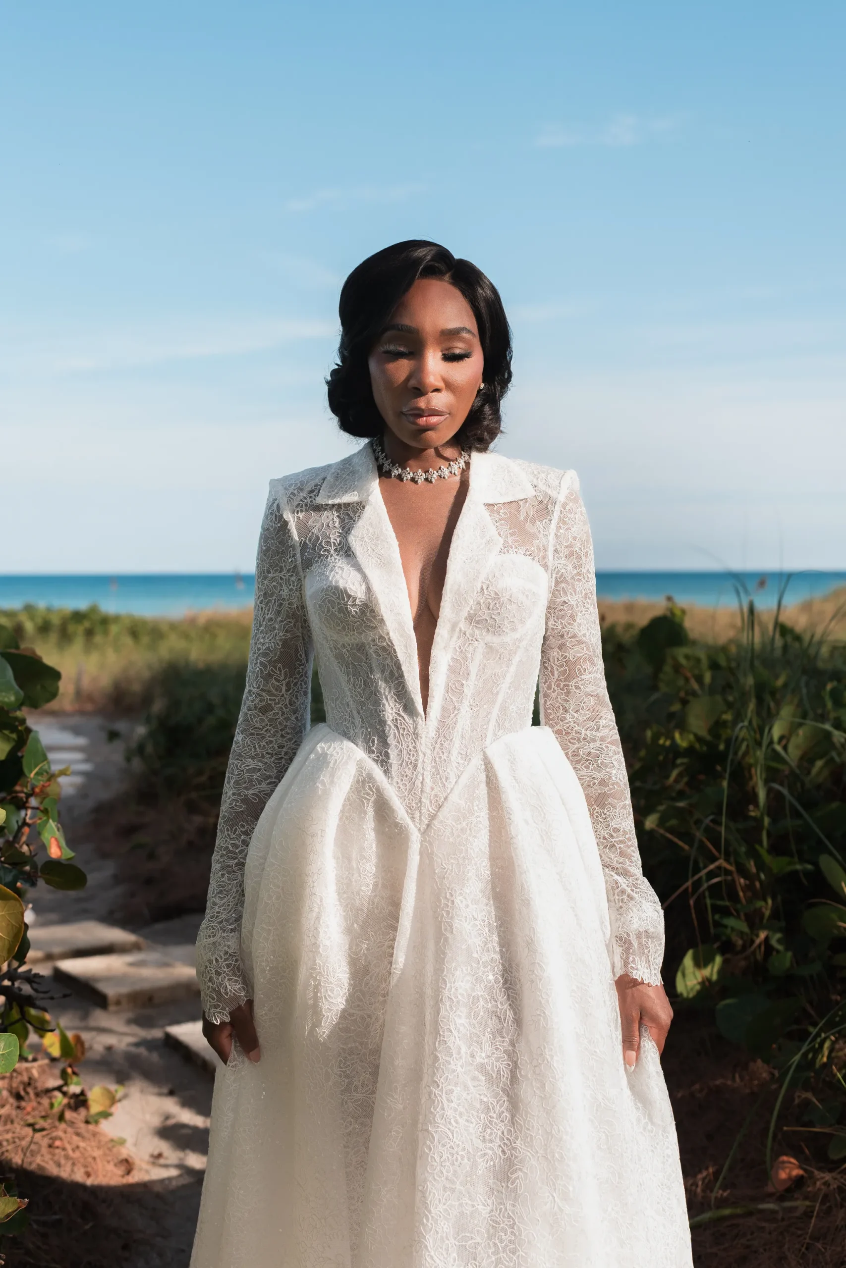Op de ochtend van de bruiloft werd Venus Williams om 8.30 uur wakker – laat naar haar maatstaven, merkt ze op – en begon ze zich klaar te maken. “Ik kreeg de mooiste nagels van Gina Edwards en ik droeg de meest ongelooflijke jurk van Georges Hobeika”, zegt Venus. “Ik wilde een jurk dragen waarvan ik dacht dat Andrea die mooi zou vinden en die magisch en perfect was voor een bruiloft in Florida.”