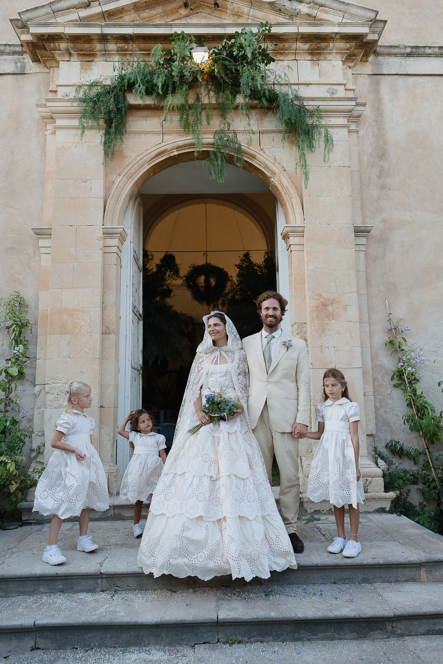 Verbier, een klein stadje in de Zwitserse Alpen, was het decor voor de eerste ontmoeting tussen Lucrezia Bonaccorsi Beccaria en Giulio Rossi Prodi. Dat was in 2019, in het huis van een vriend. “Daarna waren we slechts één weekend samen voordat covid arriveerde”, herinnert Lucrezia zich. “Giulio was in Londen en ik in Zwitserland, dus onze relatie begon via de telefoon.” Nu, vier jaar later, stapt het stel in het huwelijksbootje in het familiehuis van Lucrezia’s familie op Sicilië. Bekijk hier hun Italiaanse bruiloft.