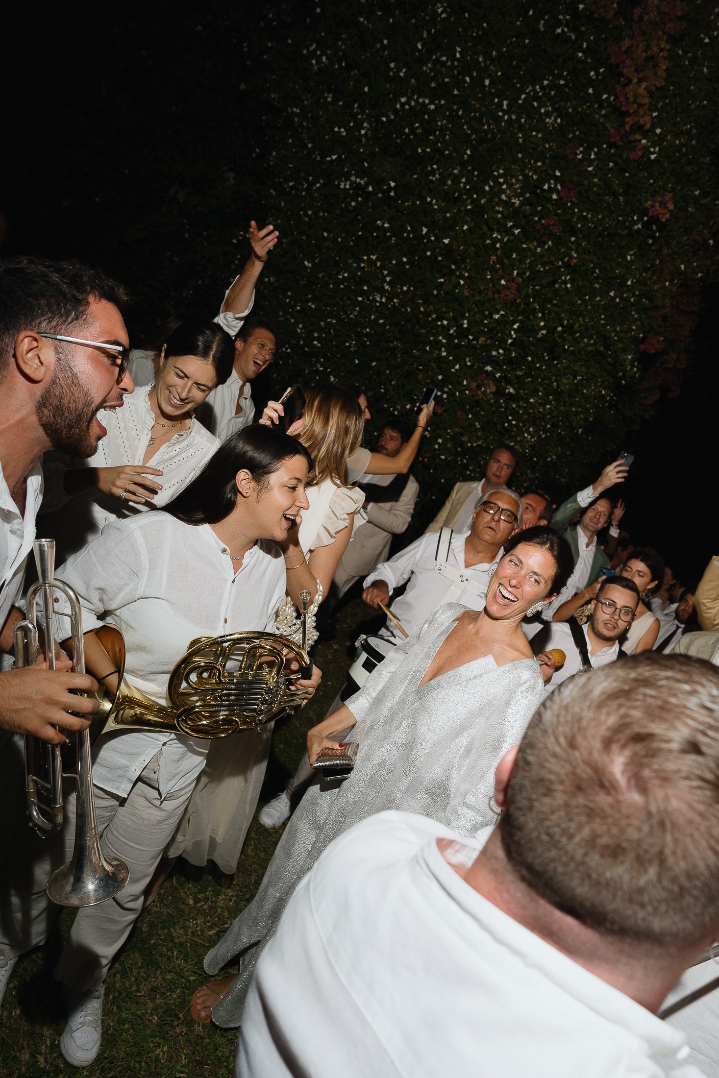 Bijna elk element van de bruiloft was zelfgemaakt. “Ik heb veel geluk gehad”, geeft Lucrezia toe. “Ik had echt een geweldig team.” Ze werkte samen met haar moeder, ontwerper Luisa Beccaria, om de tafelschikking te maken. Haar zussen Lucilla en Luna planden de jurken, gastenlijsten en entertainment. Haar beste vriendin hielp met de planning en logistiek, haar broers Ludovico en Luchino hielden toezicht op het eten en drinken. En het LùBar-team en huismanager Patrizia kookten en assisteerden. “Het belangrijkste was dat ze me allemaal met heel veel liefde hielpen.”