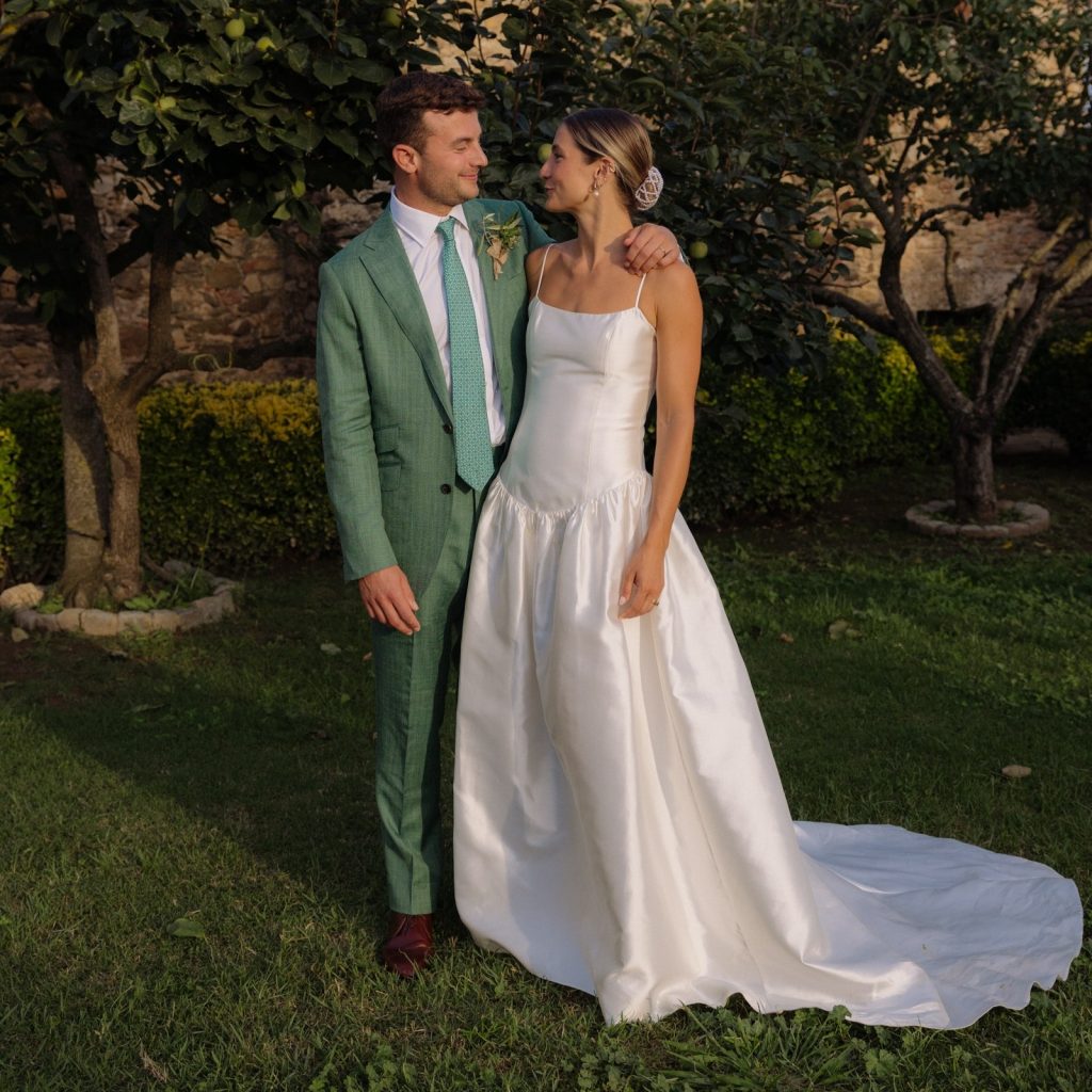 Deze bruid droeg haar vintage Dior-trouwpak achterstevoren – net als Céline Dion in de 90’s