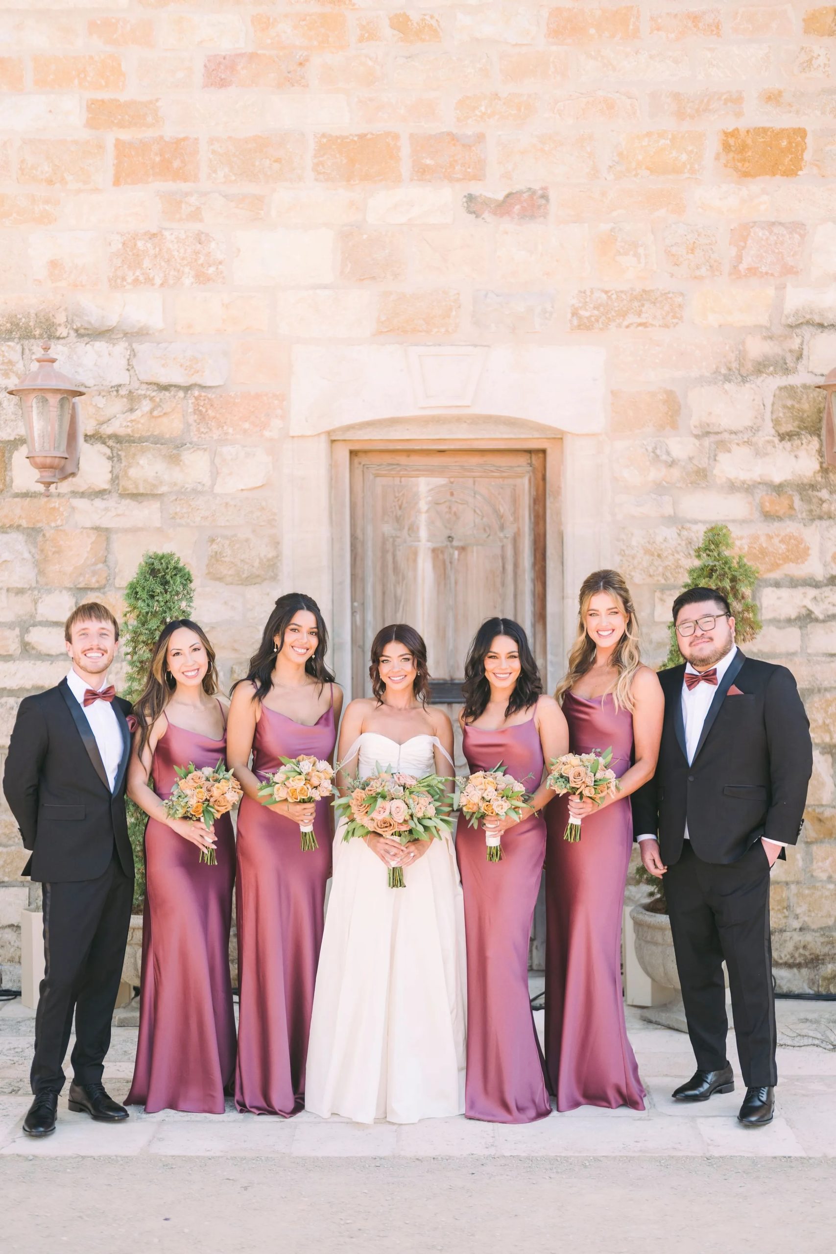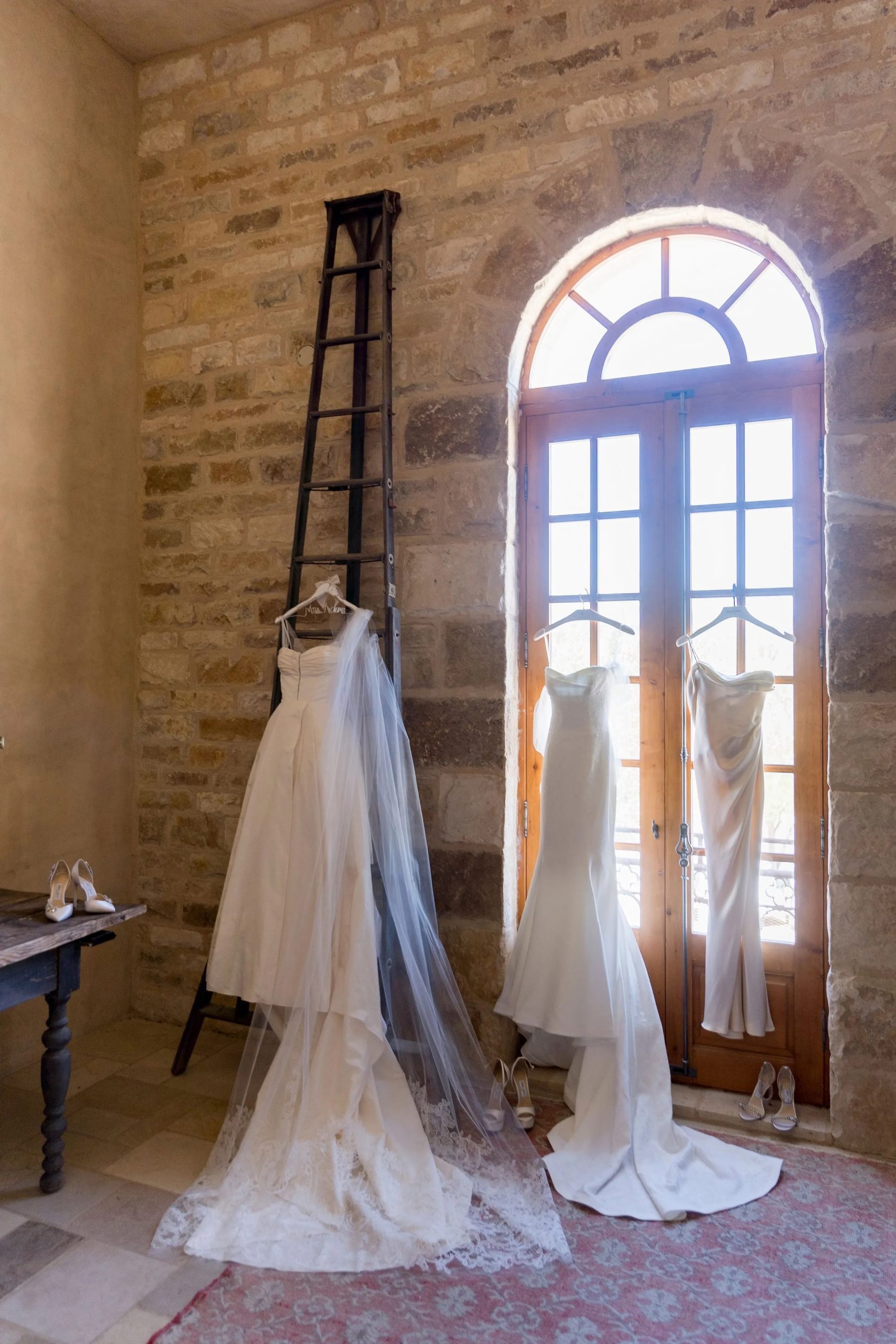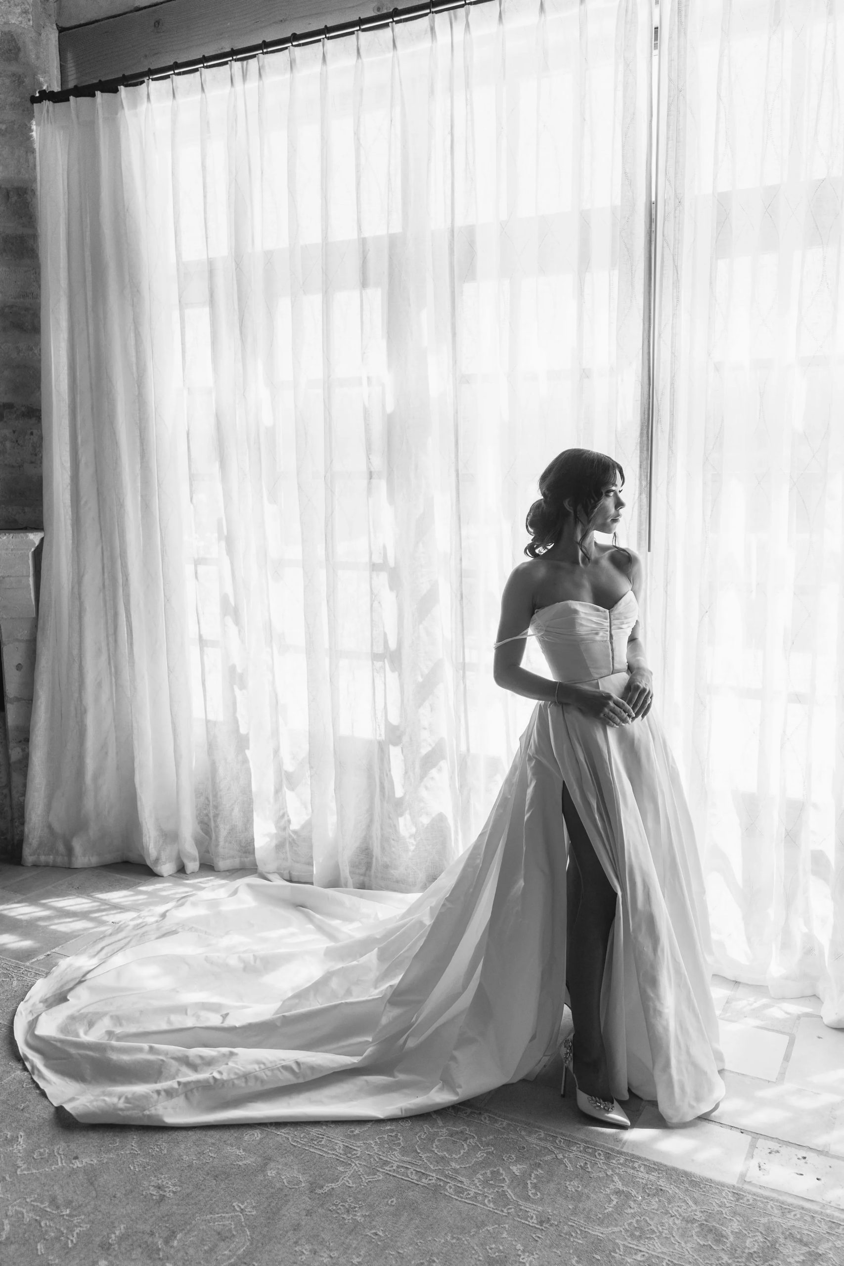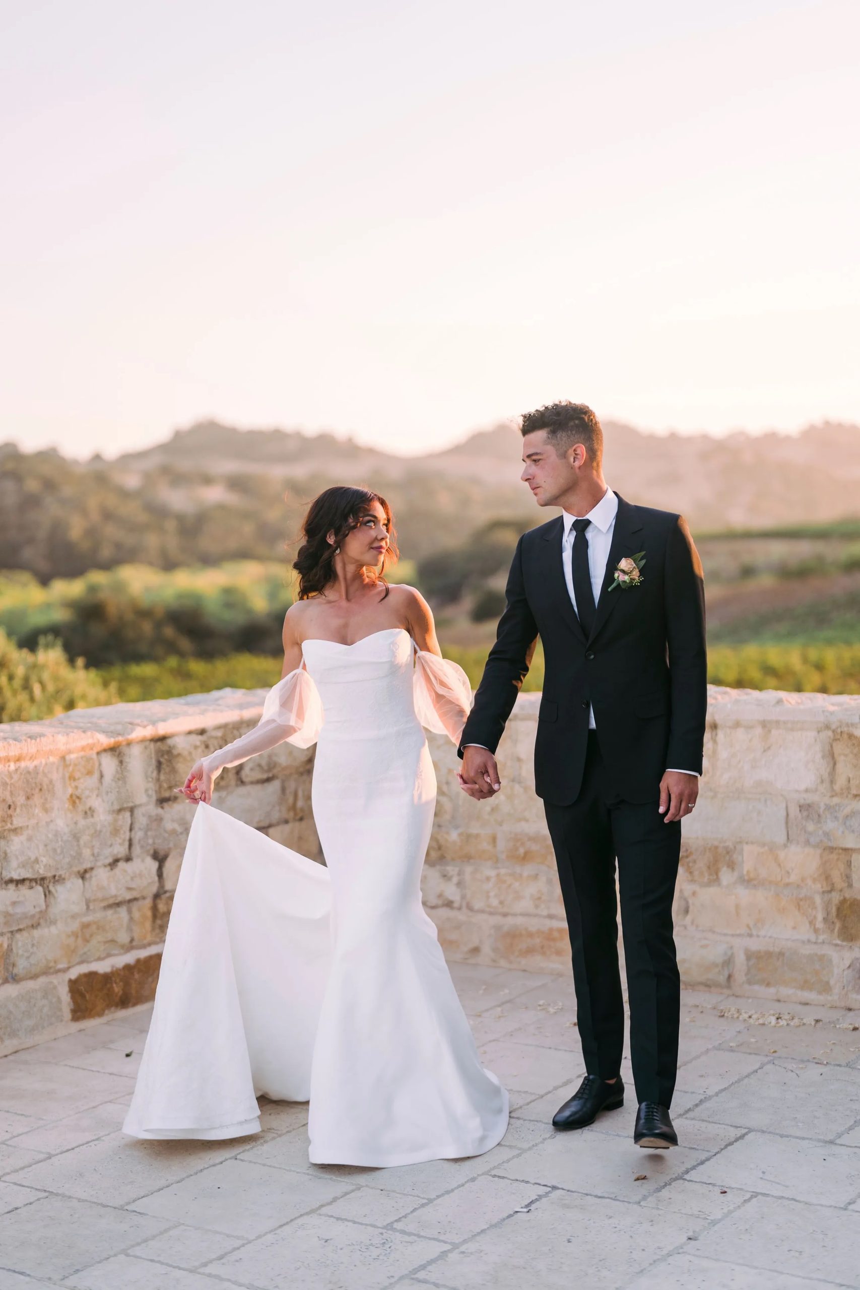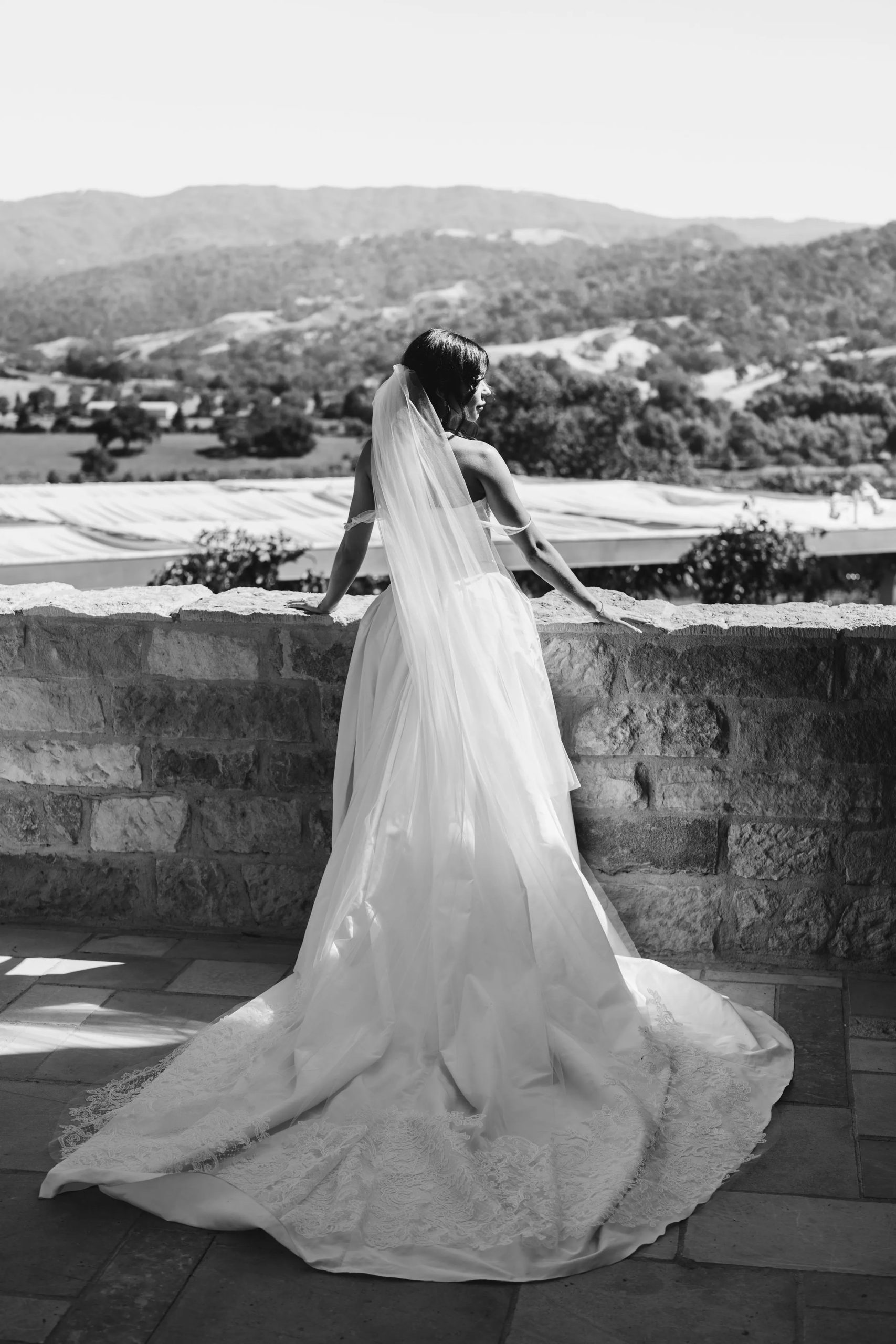 Sarah wist toen ze in 2019 begon met het plannen van haar huwelijk dat ze Vera Wang wilde dragen op haar trouwdag. “We hadden onze locatie al gekozen voordat ik begon met het stylingproces met Brad [Goreski] en Daniela [Viviana-Romero], dus we wilden een jurk die echt paste bij die esthetiek,” legt ze uit. “Onze locatie heeft het kleurenpalet van een kasteel op het Franse platteland met het architectonische ontwerp van een Italiaans kasteel.”