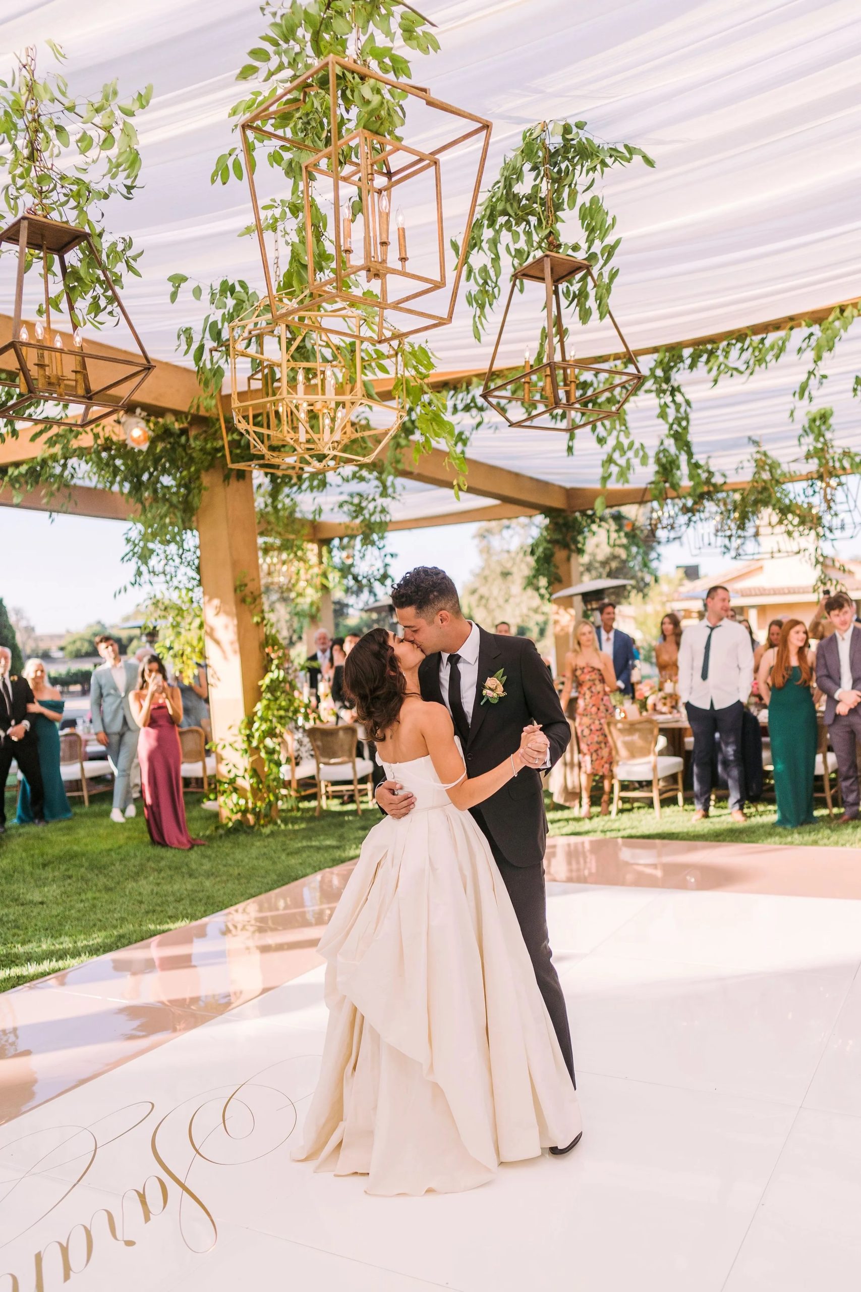 De twee begonnen hun bruiloft te plannen in september 2019. “Omdat ik aan het laatste seizoen van Modern Family begon, wilden we alvast de basis leggen voor de bruiloft, zodat ik me eerst kon concentreren op het afsluiten van zo’n belangrijk hoofdstuk in mijn leven”, zegt Sarah. “Dus besloten we een datum te prikken – de eerste van vele – en huurden we Mindy Weiss in als onze weddingplanner. Ook boekten we onze locatie, afterparty-locatie, band en fotograaf.” Ze zouden een paar weken nadat Sarah klaar was met het filmen van de finale van het seizoen weer in de trouwplanning duiken, maar toen ging de wereld in lockdown. “Toen wist ik dat de grote bruiloft die we gepland hadden, nog zeker twee jaar op zich zou laten wachten”, zegt Sarah. “Wells geloofde me niet, maar helaas had ik gelijk.”
