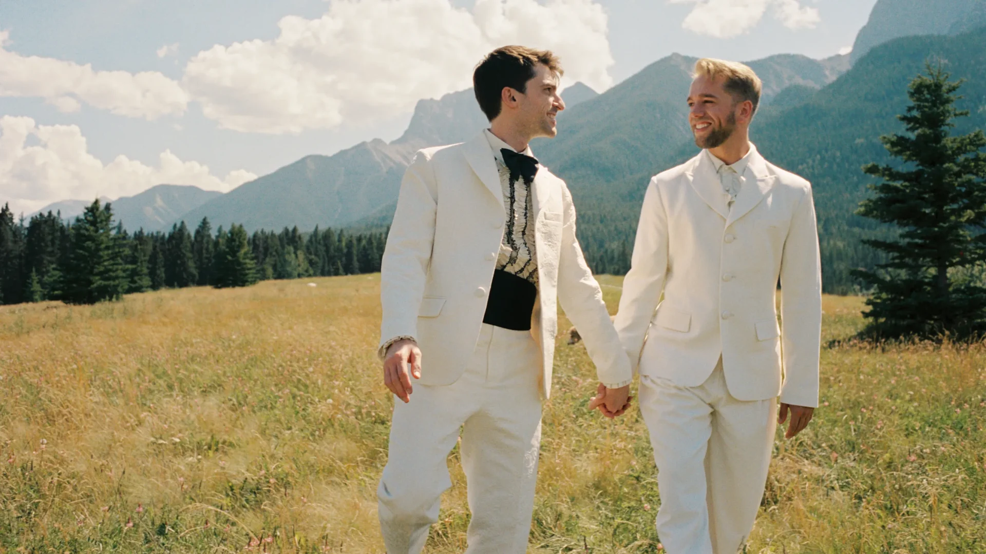 Het was dan ook geen verrassing dat de bruidegoms besloten in Banff te trouwen. “We deelden een intieme ceremonie met onze beste vrienden en familie”, vertelt Johnny over de viering op 31 juli 2025. Matthew vult aan: “Het is een van de mooiste plekken die ik ooit in mijn leven heb gezien en we wilden ons laten omringen door die natuur.” Het paar organiseerde een volledig weekend aan activiteiten voor hun 55 gasten, met de Sound of Music-bruiloft op donderdag, gevolgd door dagen vol wandelingen, kanoën en afternoon tea in het Fairmont Banff Springs.