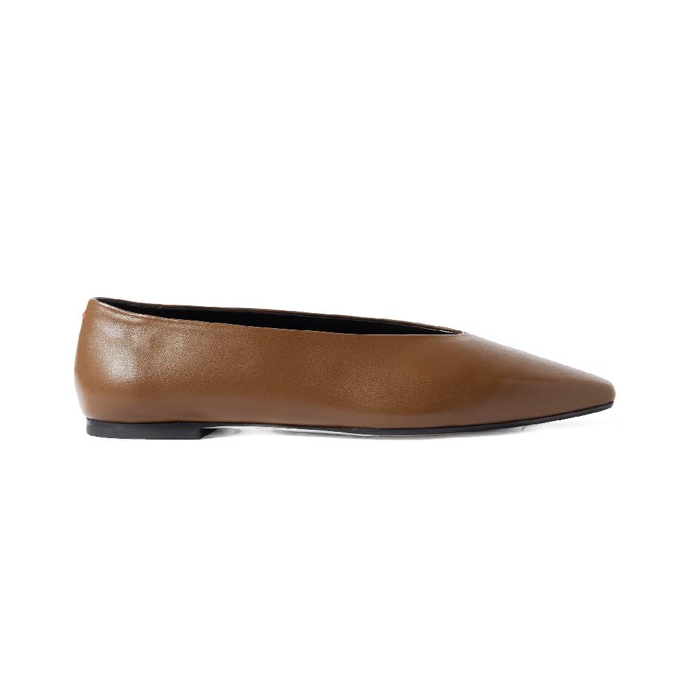 Het mooiste is nog dat deze schoenen heel makkelijk te vinden zijn, bij onze favoriete high-street labels zoals Arket en Alohas, maar ook bij designermerken als Gucci of Alaïa. Hieronder vind je onze selectie bruine ballerina’s voor de lente van 2026.