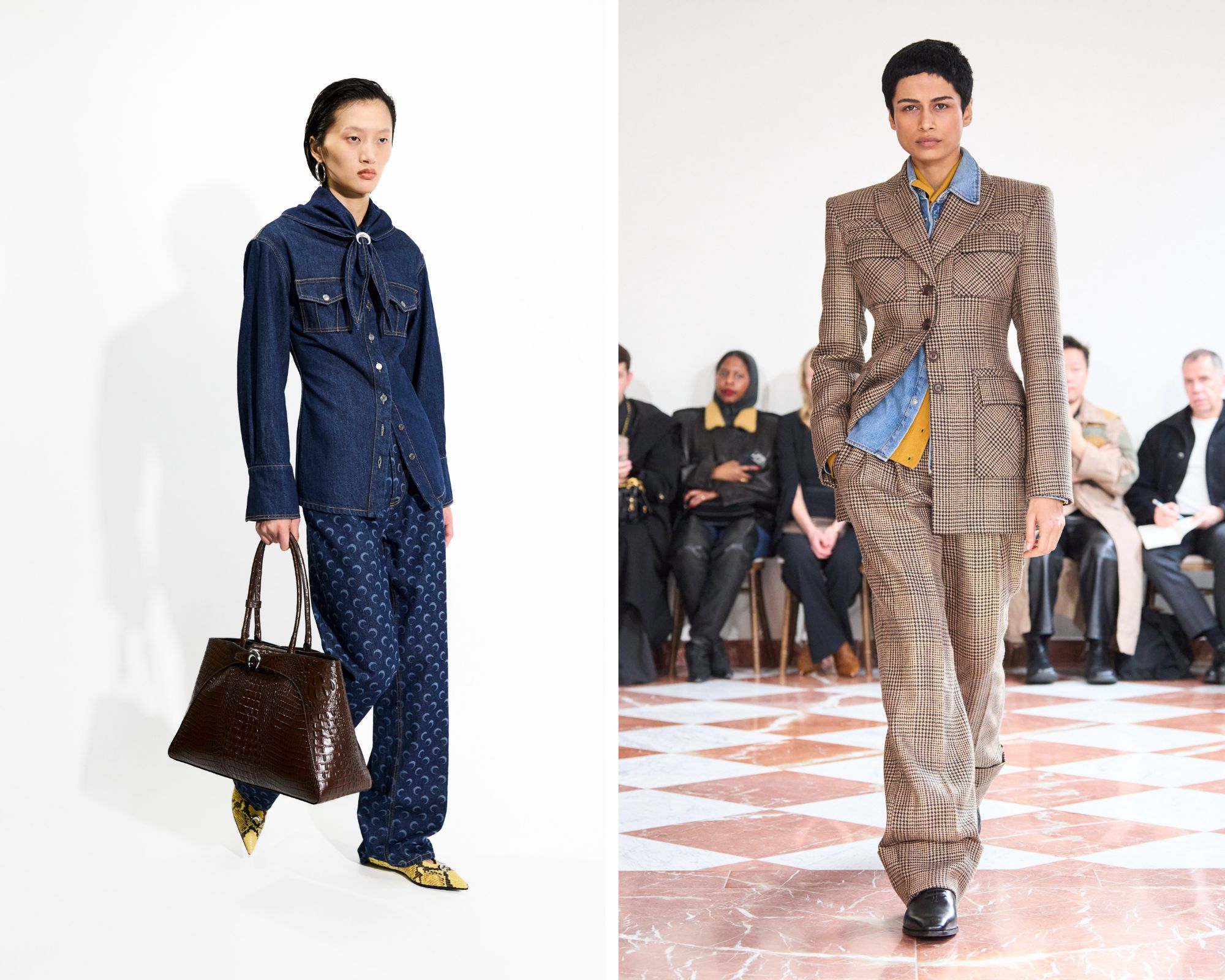 Dior is niet het enige modehuis dat een verfrissende draai geeft aan het tijdloze kledingstuk. Ook in de recente collecties van Emilia Wickstead, Emporio Armani, Juun J, Fendi, Marine Serre en Diesel kwam het spijkeroverhemd terug, zowel in double denim looks als in outfits waarin het item zorgde voor een speelse twist.