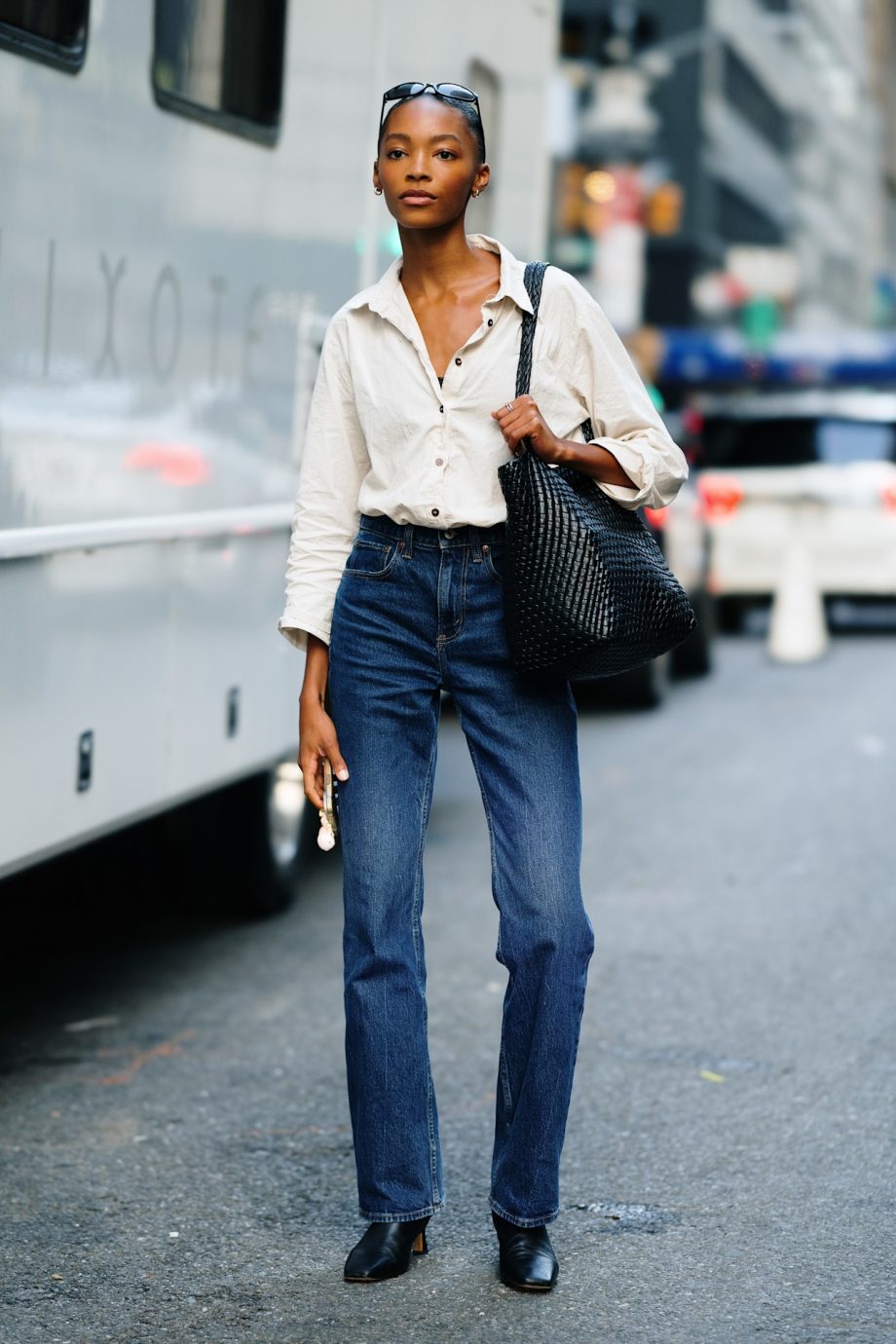 We beginnen met misschien wel de beste combinatie: een straight-leg jeans en enkellaarzen. Een geval van items die elkaar versterken, aangezien de jeans in zijn totaliteit kan schitteren, terwijl de korte laarzen ook het beste tot hun recht komen (geen zichtbare schacht). Daarbij komt dat de eenvoud van de jeans de aandacht laat vestigen op het schoenontwerp, waardoor met name opvallende silhouetten en prints alle ruimte krijgen om bewonderd te worden. Denk bijvoorbeeld aan modellen met dierenprint, die momenteel erg populair zijn, of een in het oog springende hak of neus.