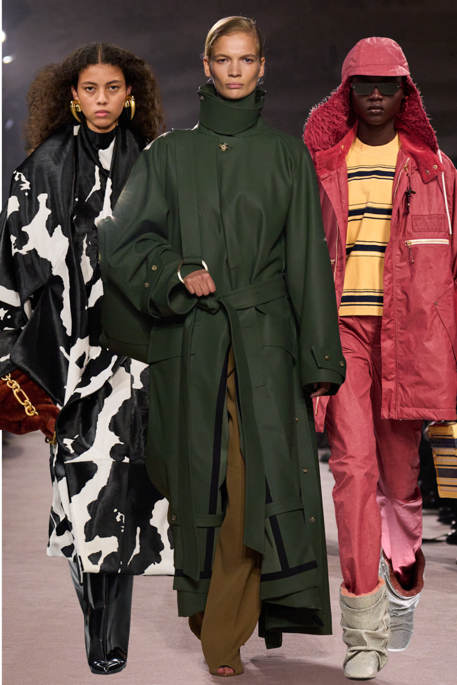 Waar we vorig seizoen nog all out gingen met nepbont, zien we nu een meer verfijnde benadering. Faux fur verschijnt vooral als detail: op kragen, manchetten of langs de mouwen. Prada en Jil Sander kozen voor jassen met een zachte kraag, Valentino en Chloé liet faux fur ook terugkomen op de mouwen. Het detail doet denken aan de Afghaanse jas, die ook weer razendpopulair is, vooral de exemplaren van Charlotte Simone. Maar we zien ook nettere, kortere en meer fitted modellen met een bescheiden kraagje. Warm, maar wel met een duidelijke modeblik.