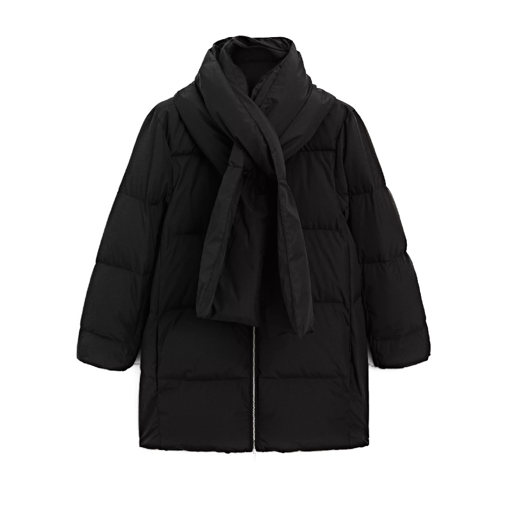 Waterafstotend gewatteerd jack met sjaal, € 189