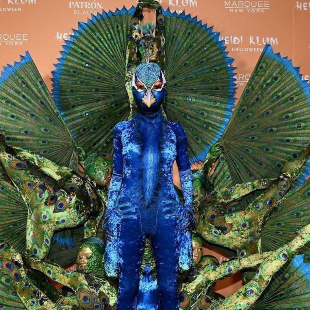Heidi Klum transformeerde dit jaar voor Halloween in een pauw, en zo zag dat eruit