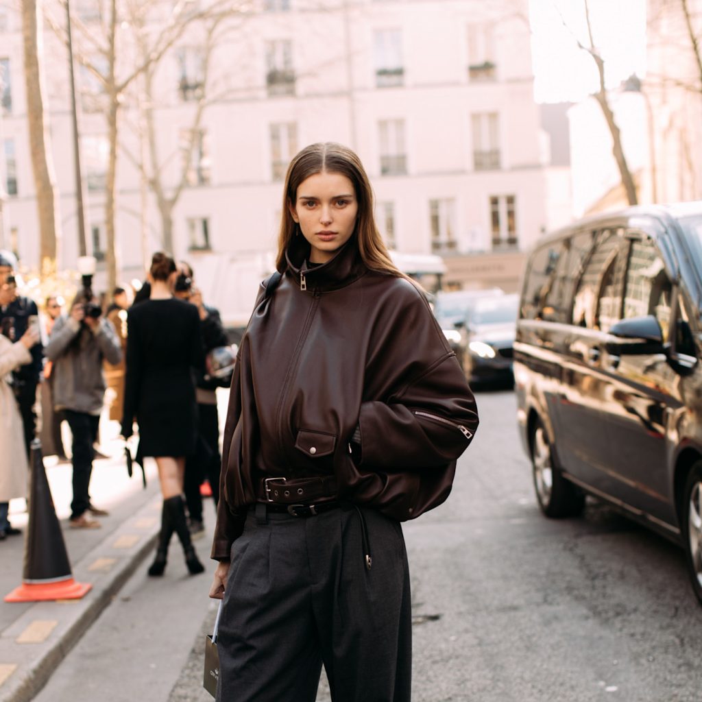 Deze bruine leren jas is de perfecte tussenjas voor de lente van 2025