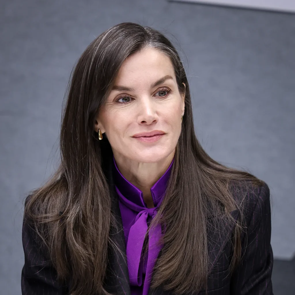 Koningin Letizia combineert een eenvoudig pak met een felpaarse blouse