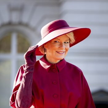 De Belgische koningin Mathilde straalt in Dries Van Noten tijdens staatsbezoek