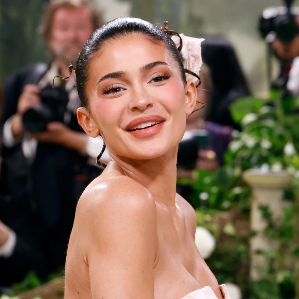 Kylie Jenner straalt in strapless jurk met sleep van Mugler uit de jaren 90