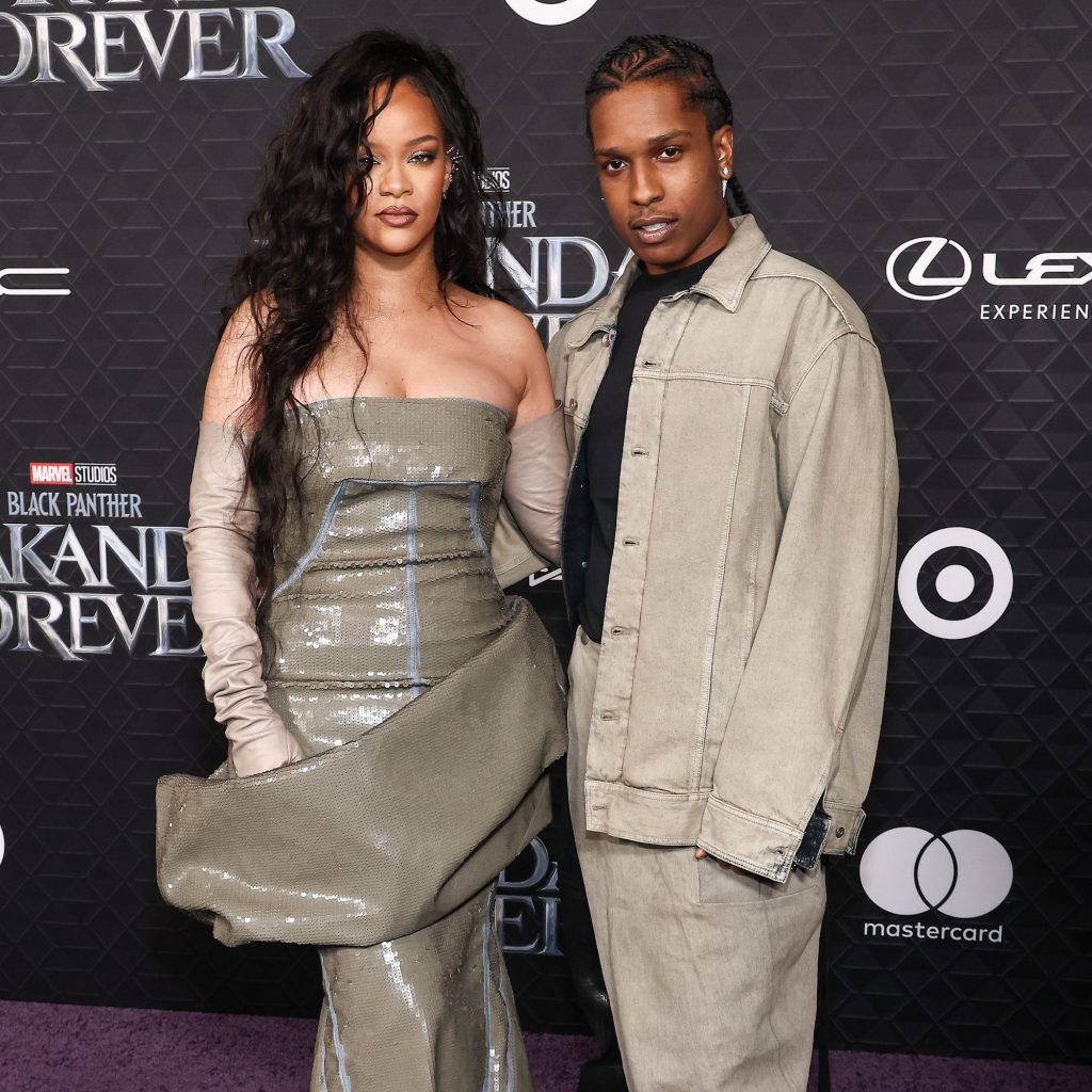 Rihanna en A$AP Rocky in matching looks bij première ‘Black Panther: Wakanda Forever’
